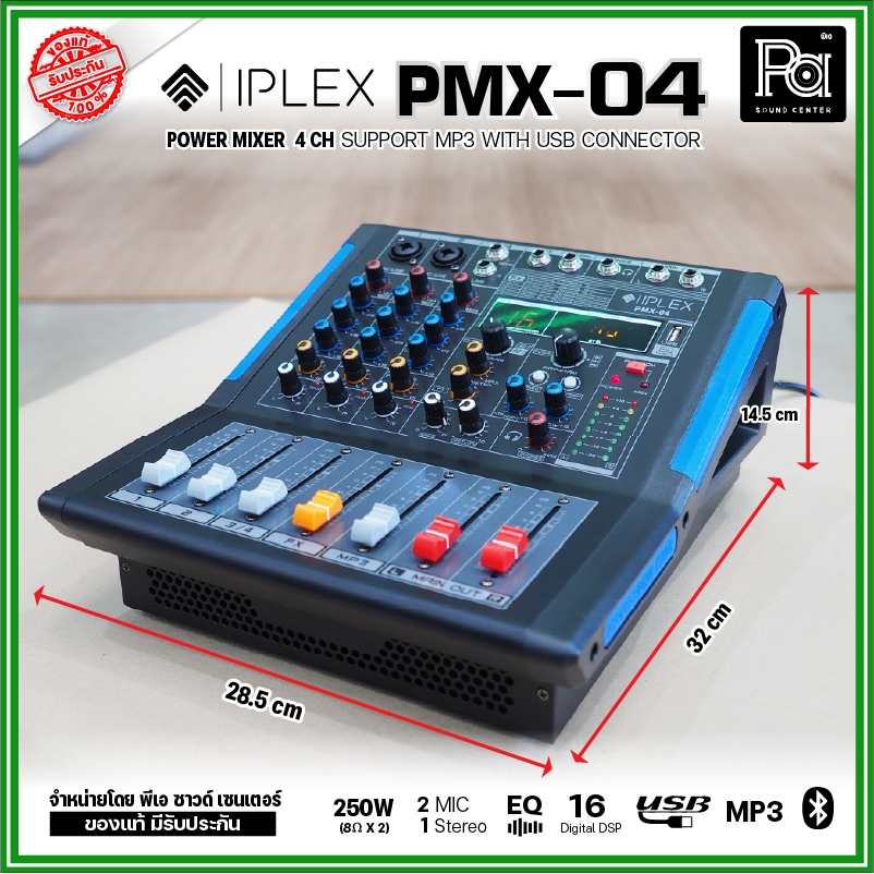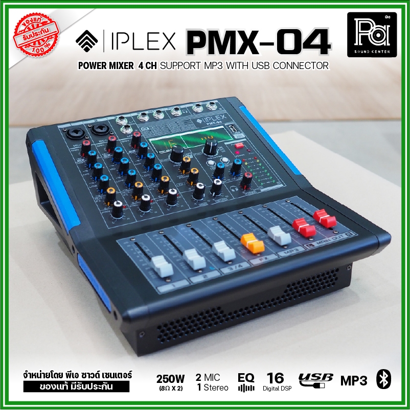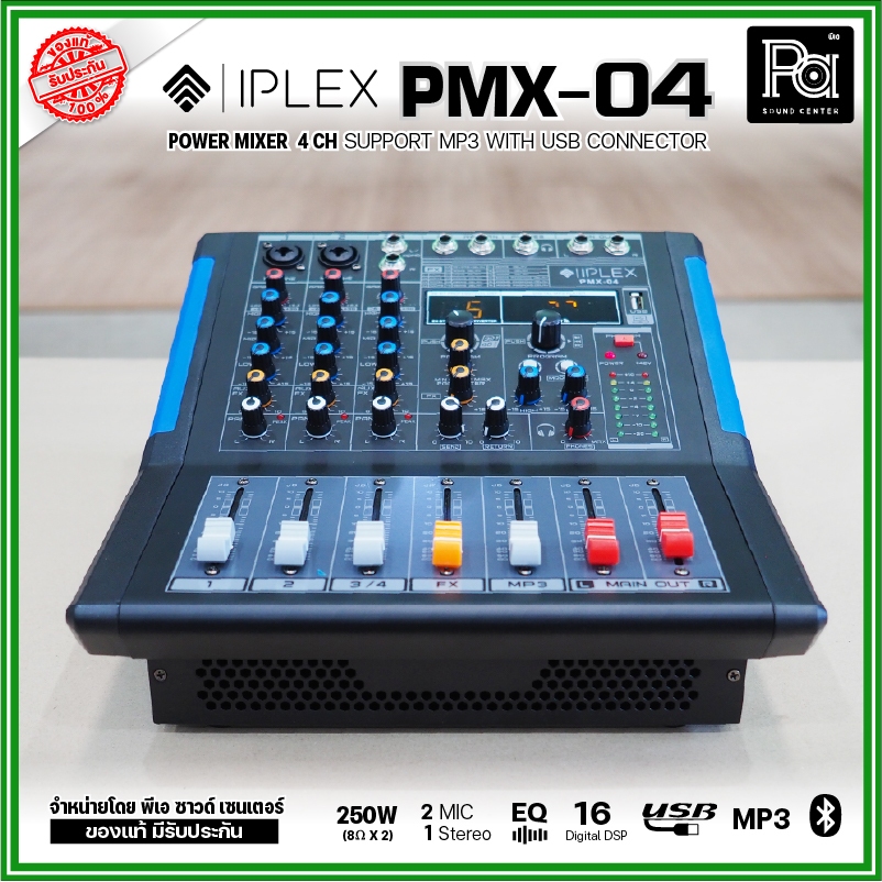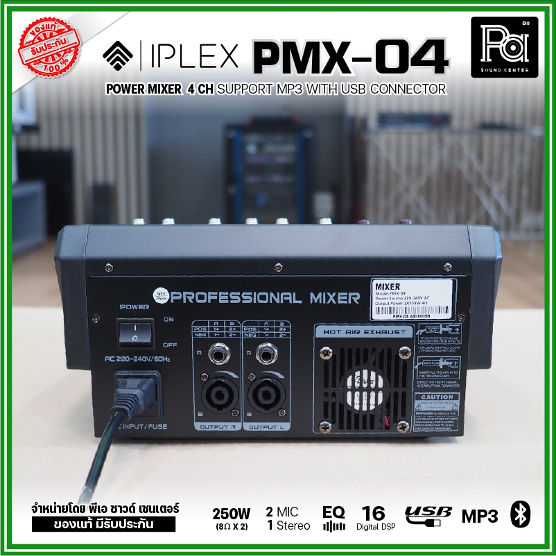 IPLEX PMX04 เพาเวอร์มิกเซอร์ สเตอริโอ 4CH 250Wx2 Audio Interface เอฟเฟคดิจิตอล PMX-04 USB Bluetooth