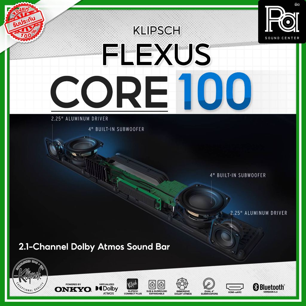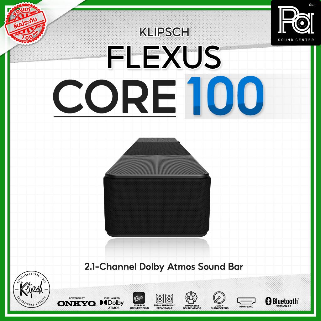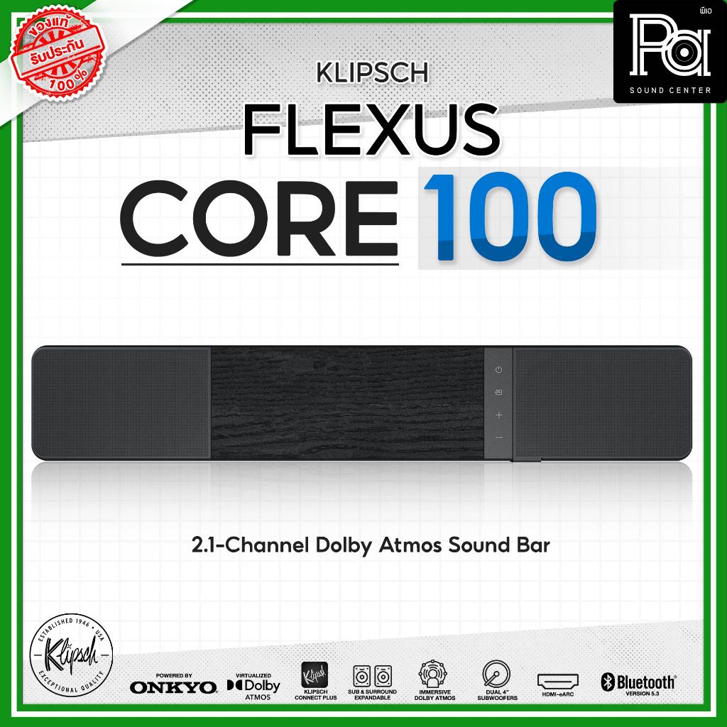 KLIPSCH Flexus Core 100 ลำโพงซาวด์บาร์ 2.1 Virtualized Dolby Atmos ซับวูฟเฟอร์ในตัวขนาด 4 นิ้ว 2 ตัว