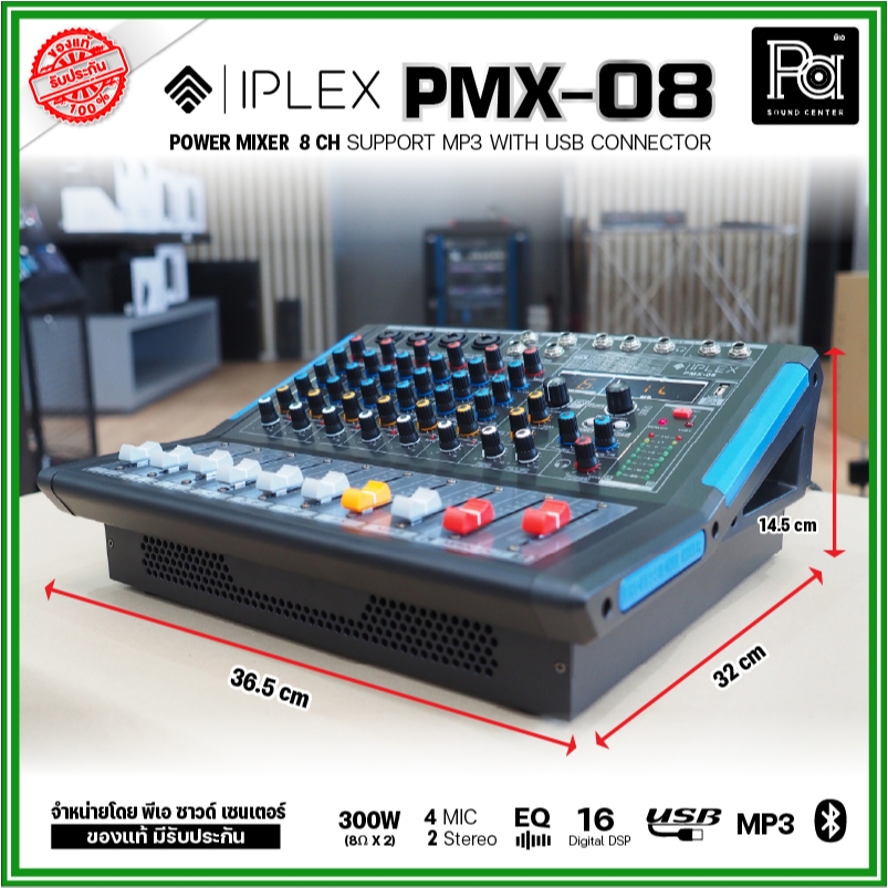 IPLEX PMX08 เพาเวอร์มิกเซอร์ สเตอริโอ 8CH 250Wx2 Audio Interface เอฟเฟคดิจิตอล PMX-08 USB Bluetooth