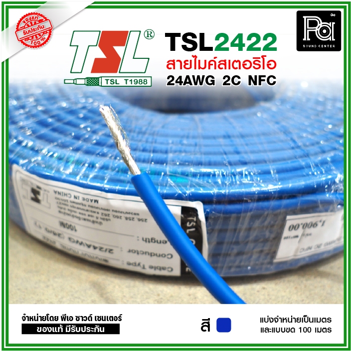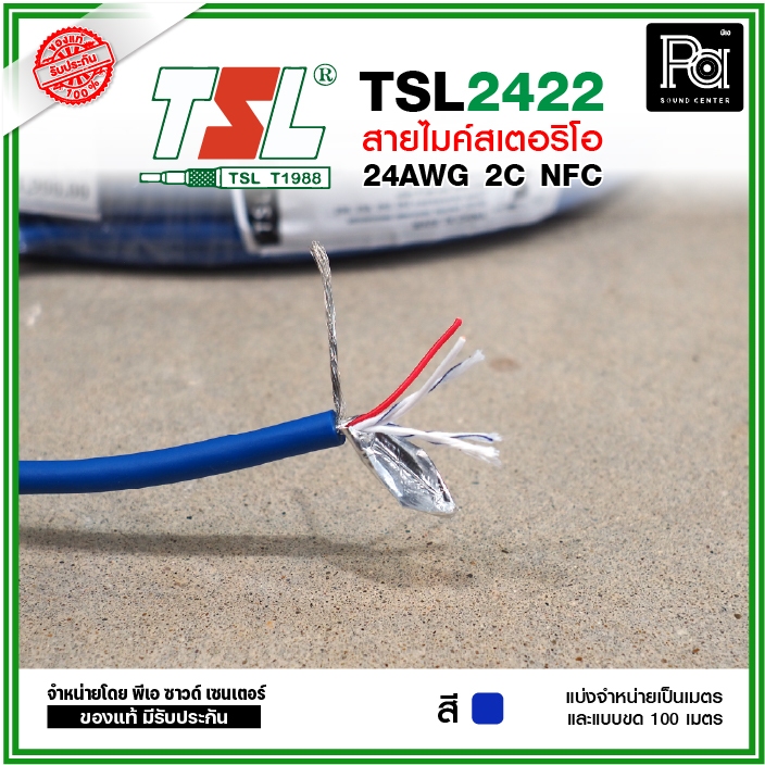 TSL 2422 Microphone Cable 2/24AWG สีน้ำเงิน สายไมค์สเตอริโอ 6 mm สายสัญญาณคุณภาพสูง **แบ่งเป็นเมตรได้**