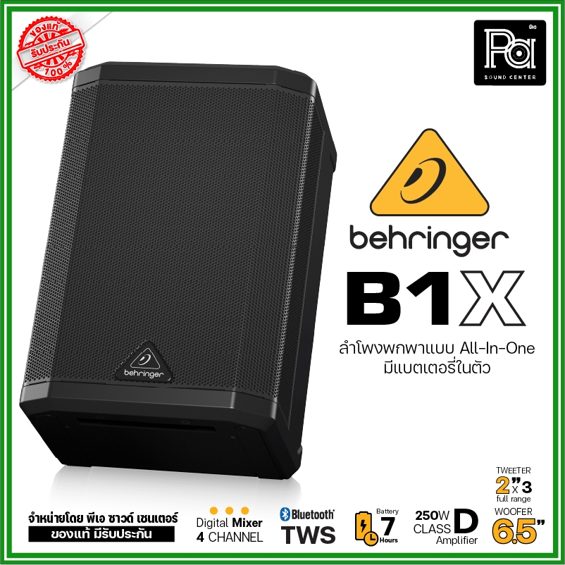 BEHRINGER B1X ตู้ลำโพงพกพา All IN ONE ขนาด 6.5 นิ้ว 250 วัตต์ ทวิตเตอร์ 2 นิ้ว มีแบตเตอรี่ในตัว