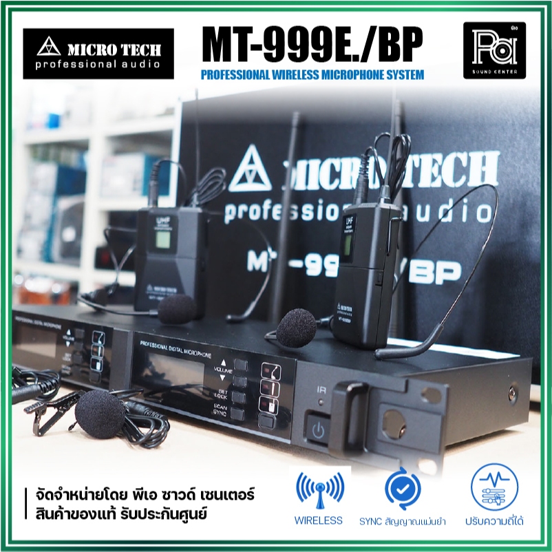 MICROTECH MT-999E / BP ไมค์หนีบปกเสื้อ คาดศีรษะคู่ Sync สัญญาณแม่นยำ ปรับความถี่ได้ พร้อมแร็คอย่างดี