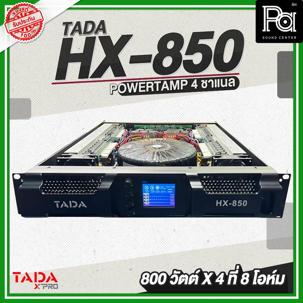 TADA HX 850 PROFESSIONAL POWER AMPLIFIER เพาเวอร์แอมป์ 4 แชลแนล กำลังขับ 800 วัตต์ ที่ 8 โอห์ม มีครอสโอเวอร์ในตัว