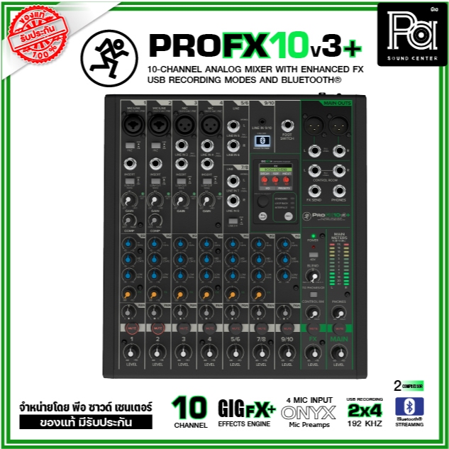 Mackie ProFX10v3+ มิกเซอร์อนาลอก 10 ชาแนล ระดับมืออาชีพ เอฟเฟคในตัว มี 2X4 USB-C AUDIO INTERFACE