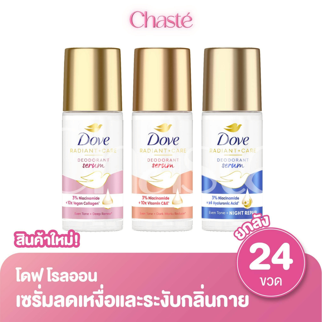 (ยกลัง 24 ขวด!) Dove โดฟ โรลออน เซรั่มระงับกลิ่นกาย แบบขวด ขนาด 45 มล.