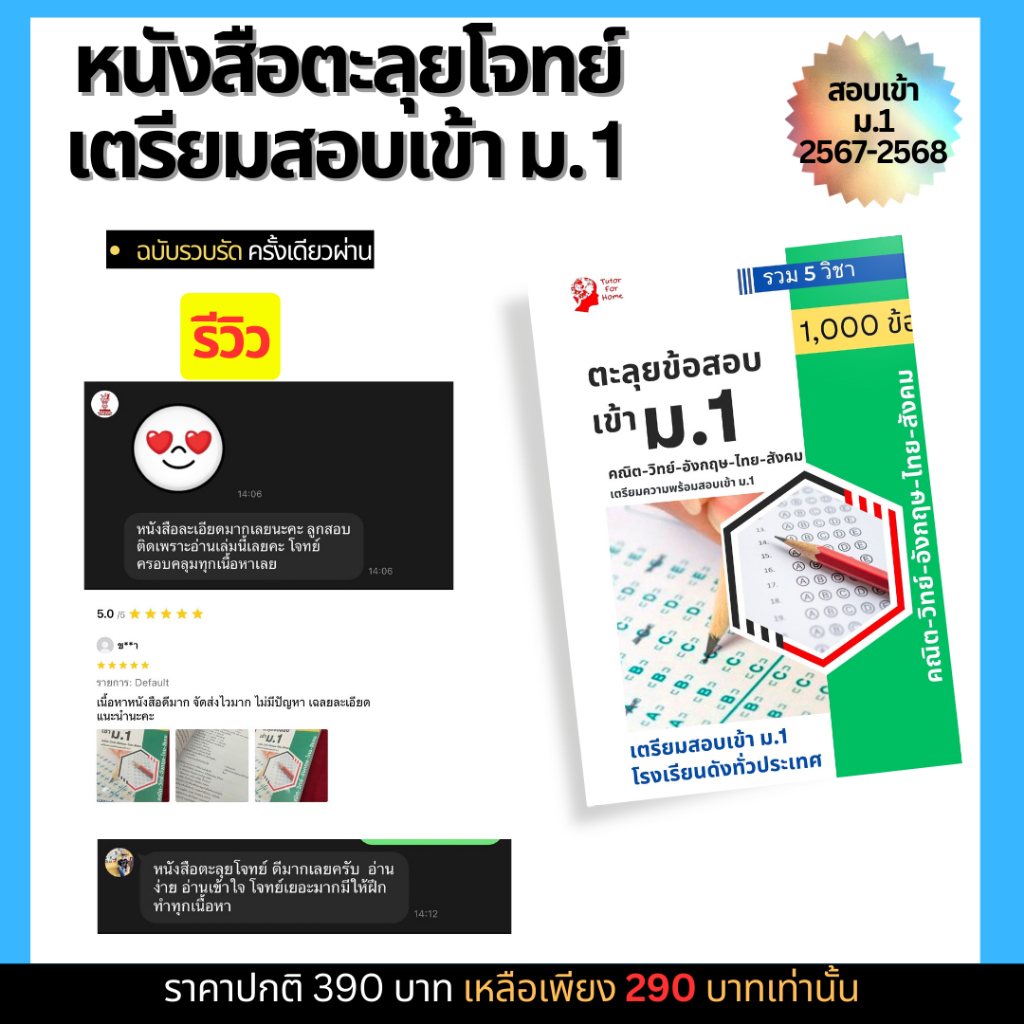 หนังสือตะลุยโจทย์สอบเข้าม.1 ข้อสอบ 1000 ข้อ พร้อมเฉลย