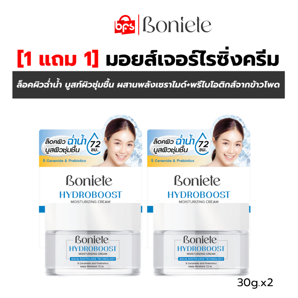 [1แถม1] BONIETE มอยส์เจอร์ไรซิ่ง ครีม HYDROBOOST MOISTURIZING CREAM 30g. ล็อคผิวฉ่ำน้ำ บูสท์ผิวชุ่มชื้น