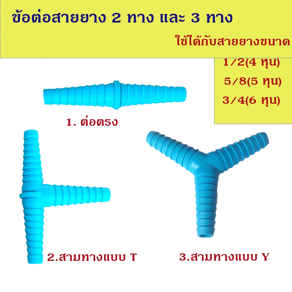 ข้อต่อสายยาง 2ทาง และ 3ทาง ใช้ได้กับสายยางขนาด 1/2(4หุน) 5/8(5หุน) และ3/4(6หุน)
