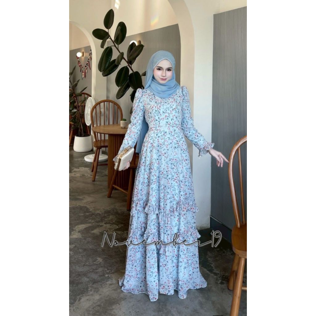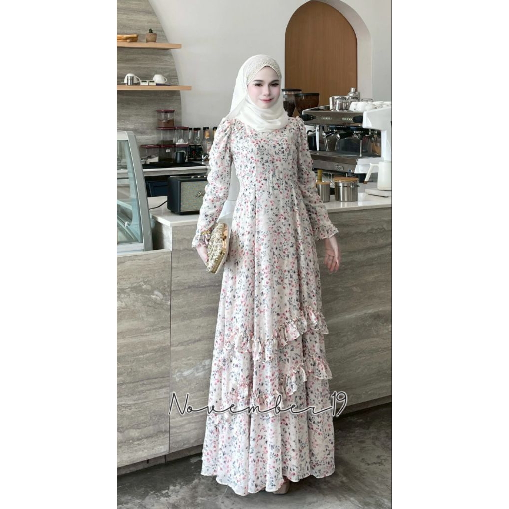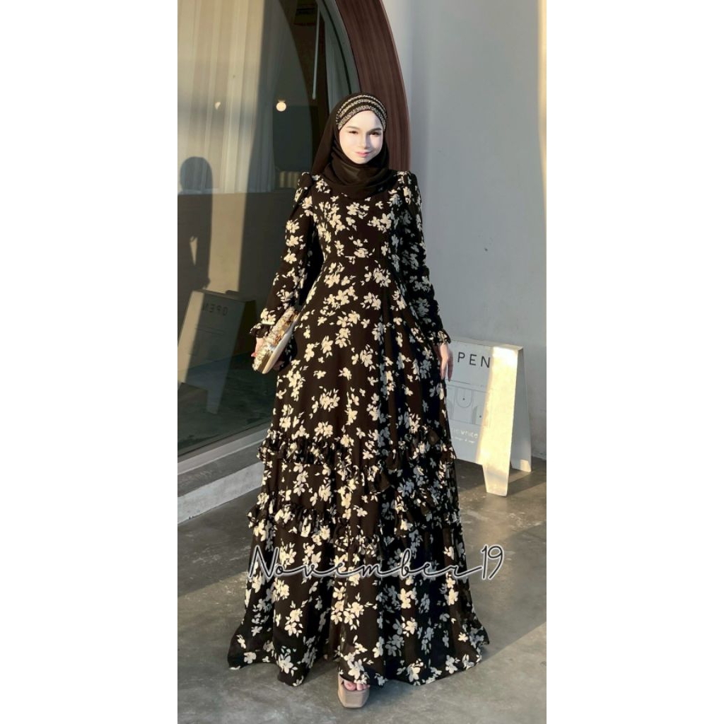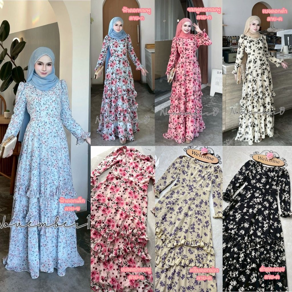 🚛ส่งฟรี+โค้ดลดสุดคุ้ม✅✅ชุดเดรสอิสลาม ชุดเดรสมุสลิม ชีฟอง ดาฟนี่ (มีระบายแค่ด้านหน้า)