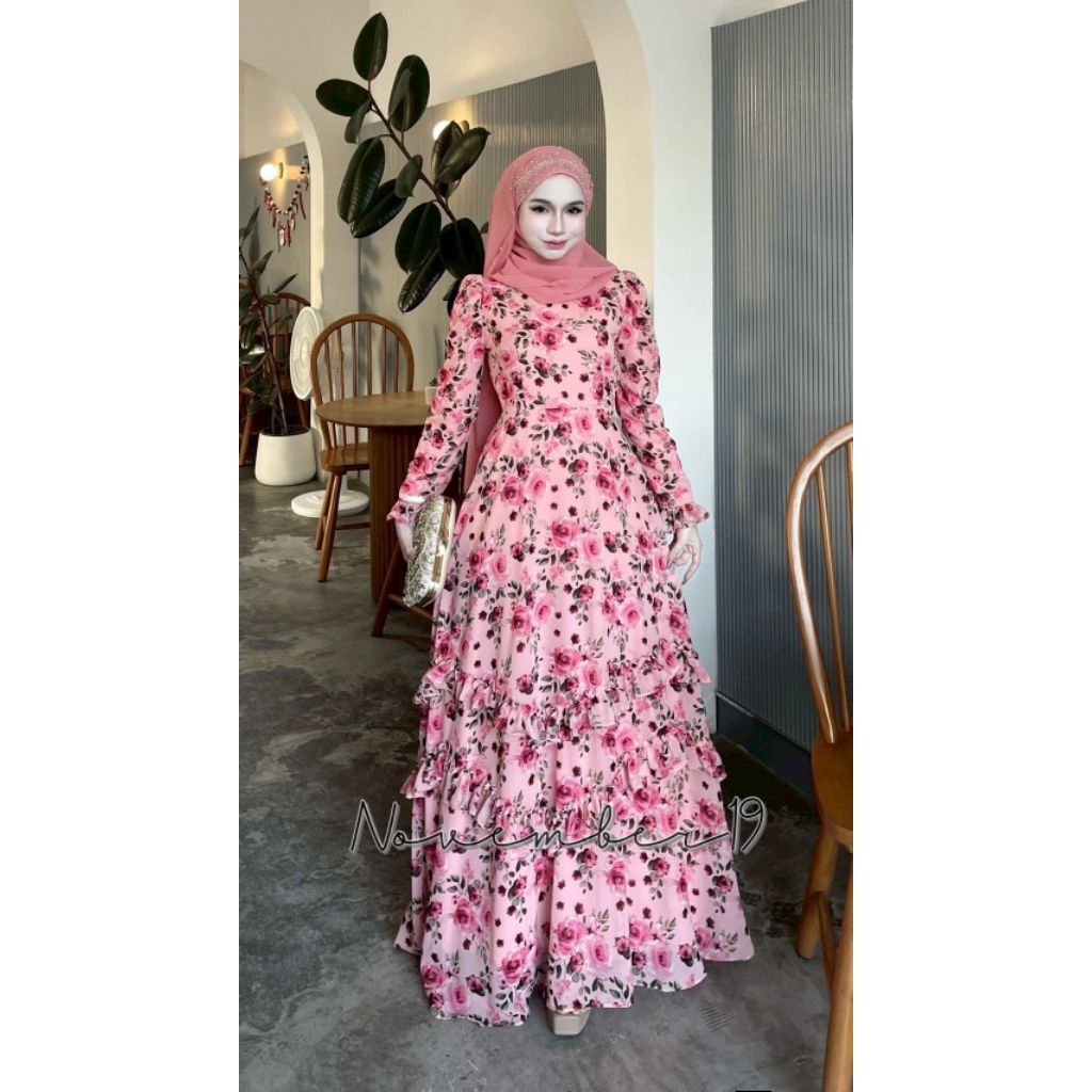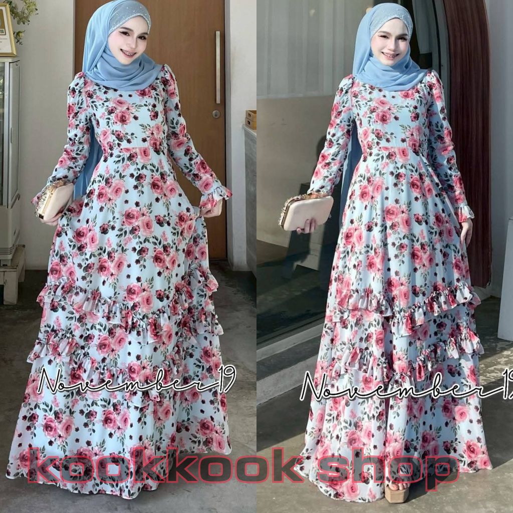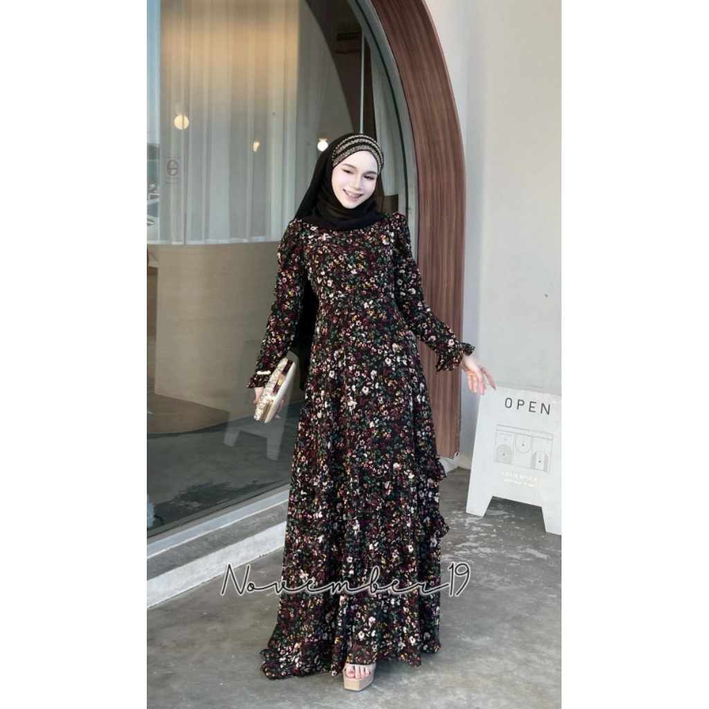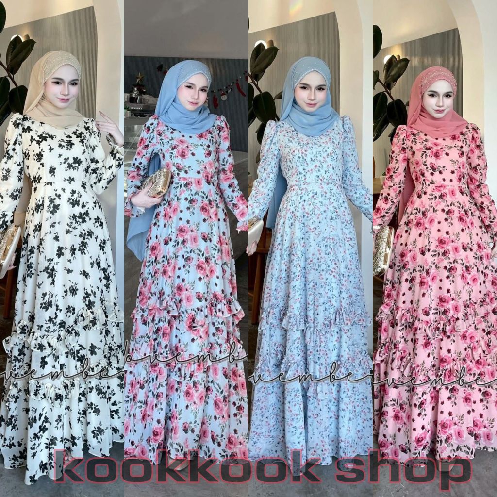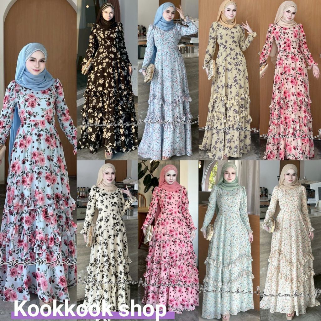 🚛ส่งฟรี+โค้ดลดสุดคุ้ม✅✅ชุดเดรสอิสลาม ชุดเดรสมุสลิม ชีฟอง ดาฟนี่ (มีระบายแค่ด้านหน้า)