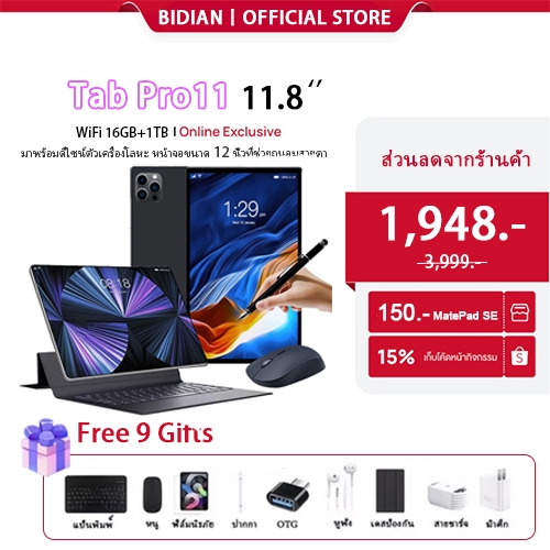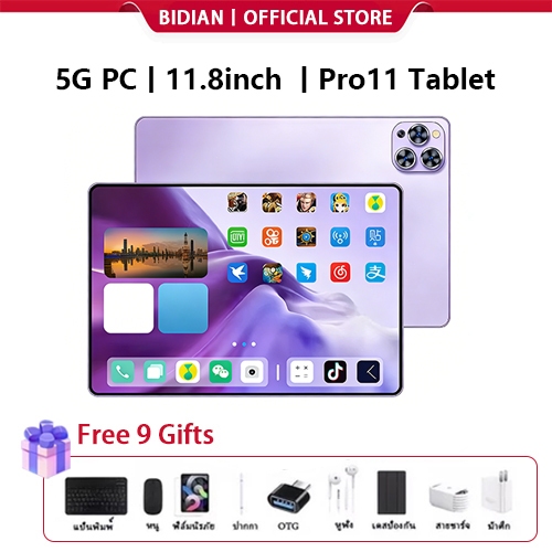 BIDIAN【ซื้อ1แถม12+แป้นพิมพ์ฟรี】2026 ใหม่ Pro11 11.8นิ้ว 5G tablet android RAM 16GB ROM 1TB Full HD 14-Core แท็บเล็ตถูกๆ