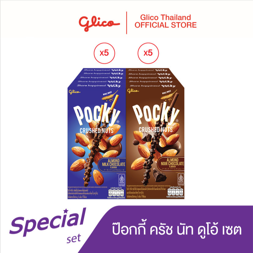 Pocky Crushed Nuts Duo set ป๊อกกี้ ครัช นัท ดูโอ้ เซต (รสมิลค์ช็อกโกแลต x 5 / รสนัวร์ช็อกโกแลต x 5).