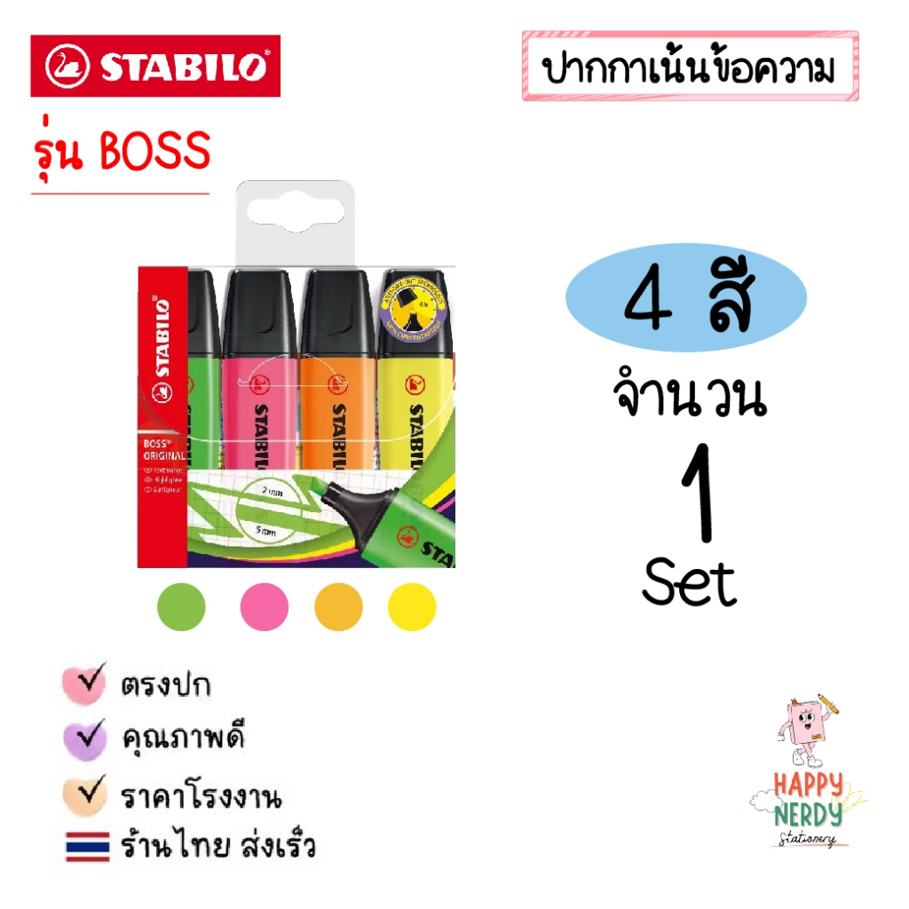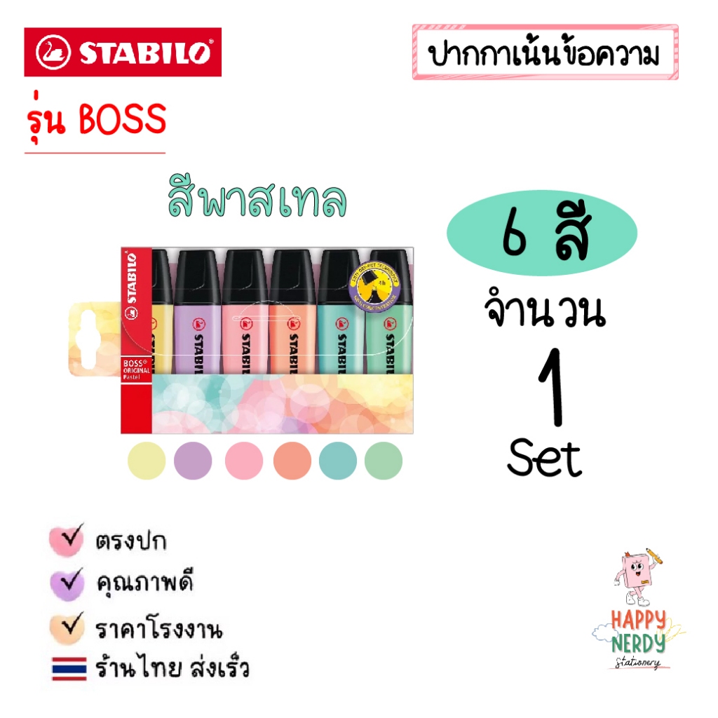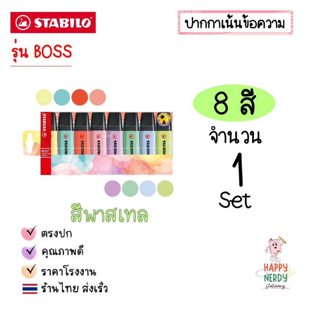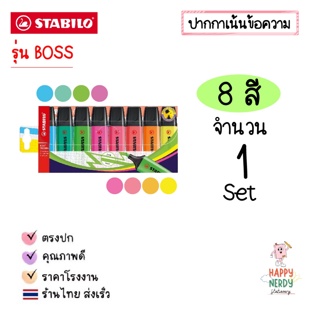 STABILO ปากกาเน้นข้อความ STABILO BOSS Set ชุด 4 สี, 6 สี และ 8 สี โทนสีปกติและสีพาสเทล Original & Pastel (ราคาต่อ 1 ชุด)