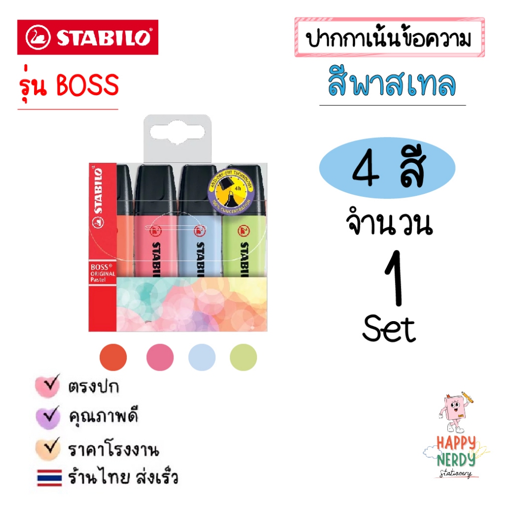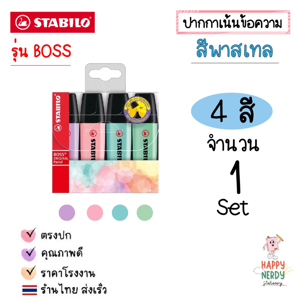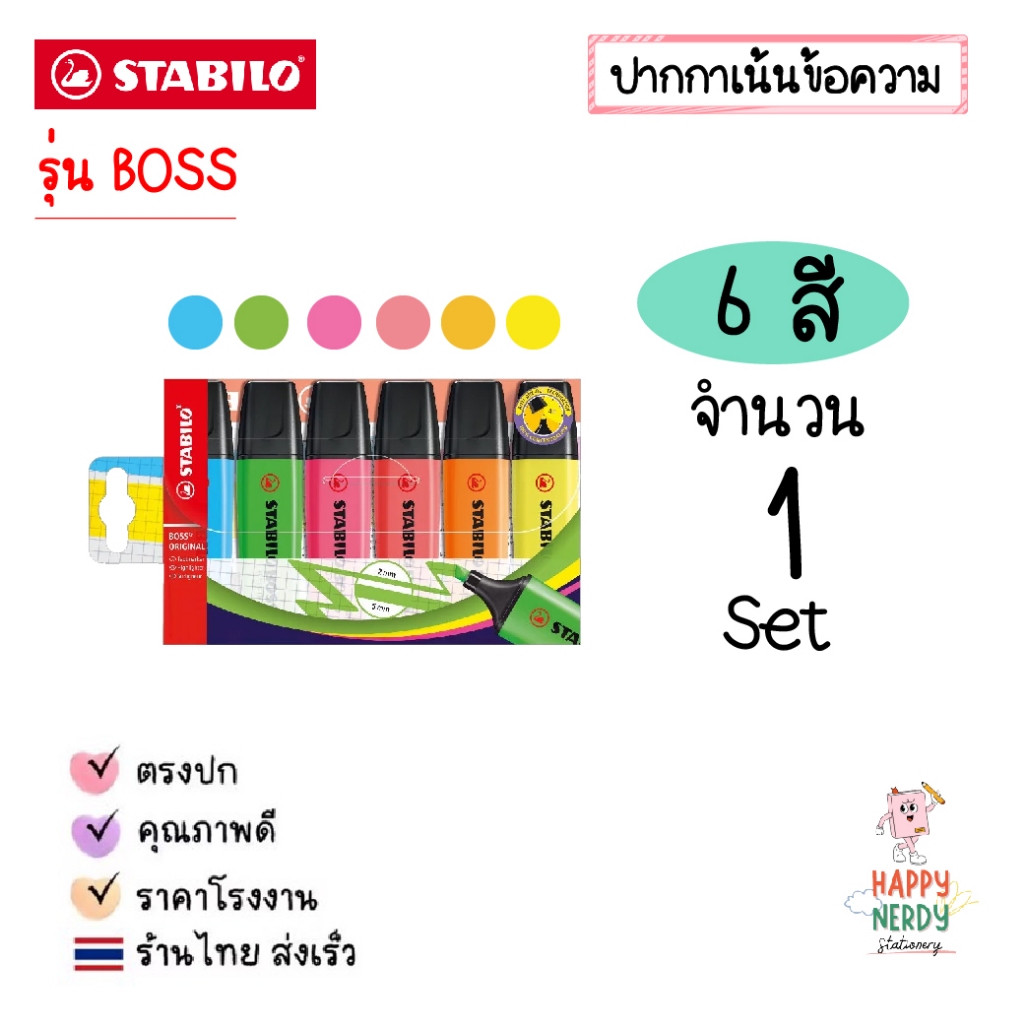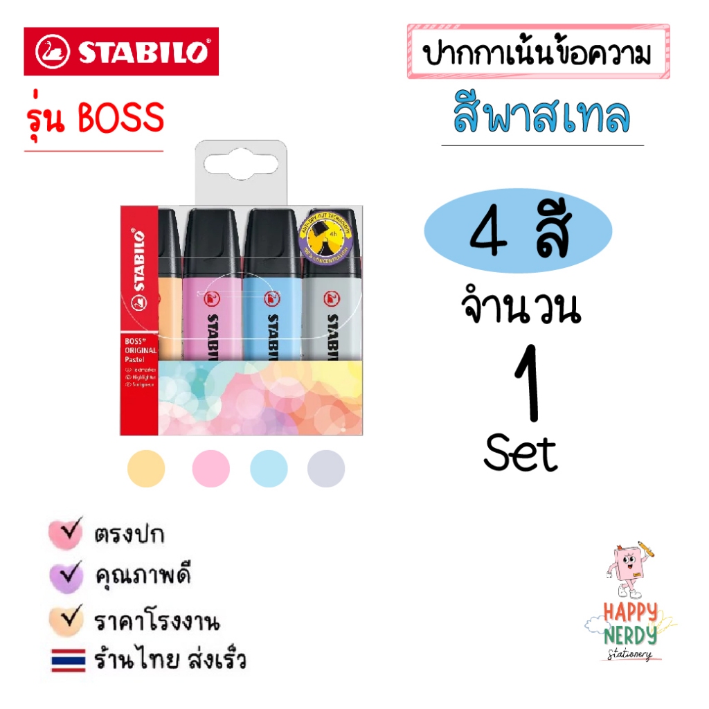 STABILO ปากกาเน้นข้อความ STABILO BOSS Set ชุด 4 สี, 6 สี และ 8 สี โทนสีปกติและสีพาสเทล Original & Pastel (ราคาต่อ 1 ชุด)