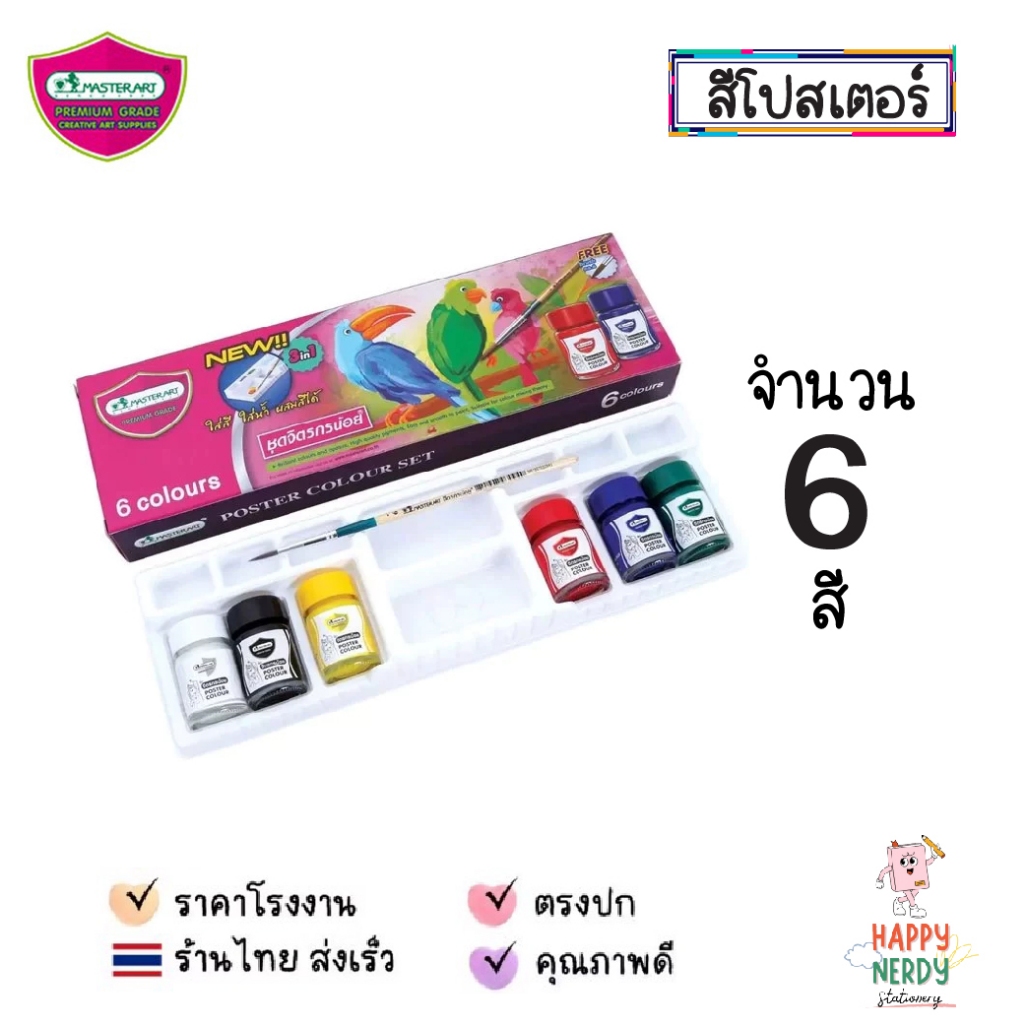 Master Art สีโปสเตอร์มาสเตอร์อาร์ท 6 สี 15 ml. พร้อมพู่กันและถาดสี ครบเซต