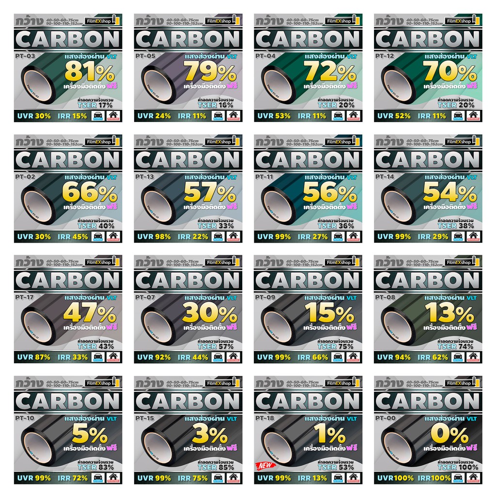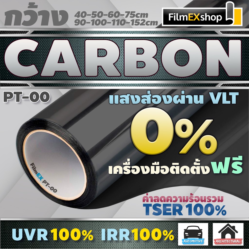 ฟิล์มกรองแสง ฟิล์มทึบแสง ฟิล์มคาร์บอน PT-00 Carbon Window Film ฟิล์มติดกระจก (ราคาต่อเมตร)