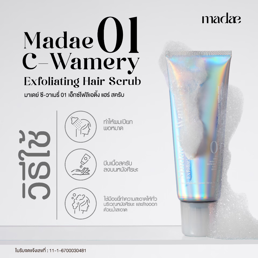 สครับผม มาเดย์ MADAE C-WAMERY 01 EXFOLIATING HAIR SCRUB มาเดย์ ซี-วาเมรี่ 01 เอ็กซ์โฟลิเอต้ิง แฮร์ สครับ