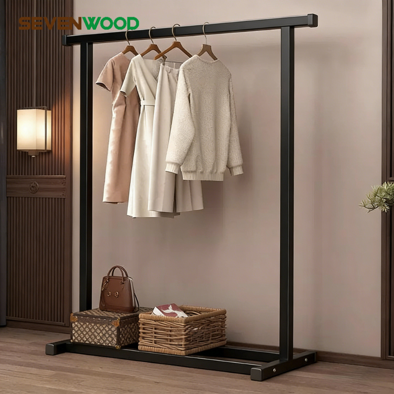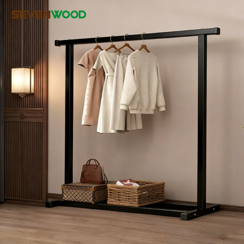 SEVENWOOD ราวแขวนผ้า ราวตากผ้า ที่แขวนหมวก ราวผ้า แขวน รองรับน้ำหนัก 50kg ราวแขวนผ้าบาร์คู่ เเข็งเเรง