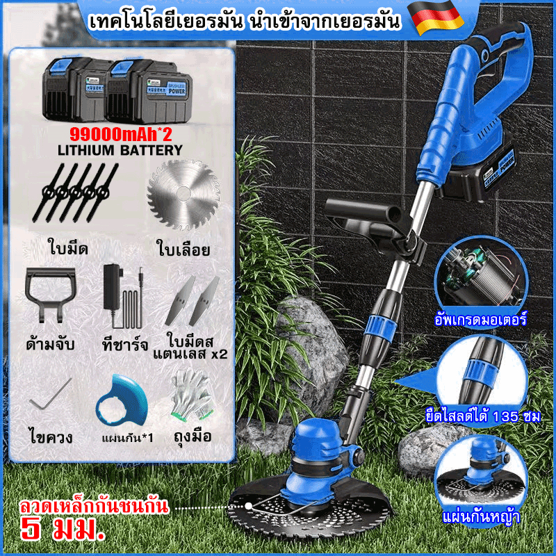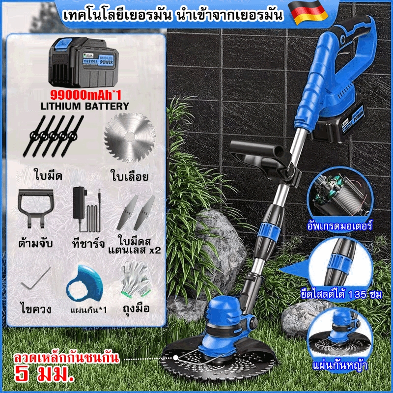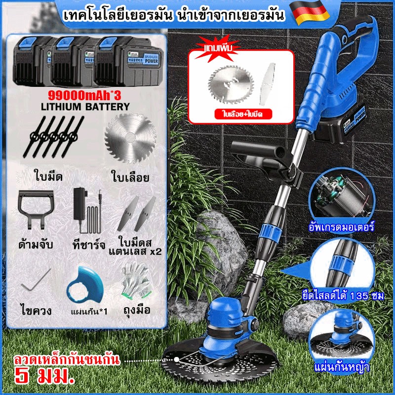 🔰มีการรับประกัน🔰 เครื่องตัดหญ้า 99000mAh*3 เครื่องตัดหญ้าไฟฟ้า เครื่องตัดหญ้าไร้สาย ราคาต่ำสุดบนแพลตฟอร์ม 999V/1KG ประสิทธิภาพการตัดสูง ยต่อการใช้สำหรับกำจัดวัชพืชตัดไม้ทวงคืนพื้นที่รกร้าง เครื่องตัดหญ้าแบต เครื่องตัดหญ้าเล็ก เครื่องตัดหญ้าไร้สาย