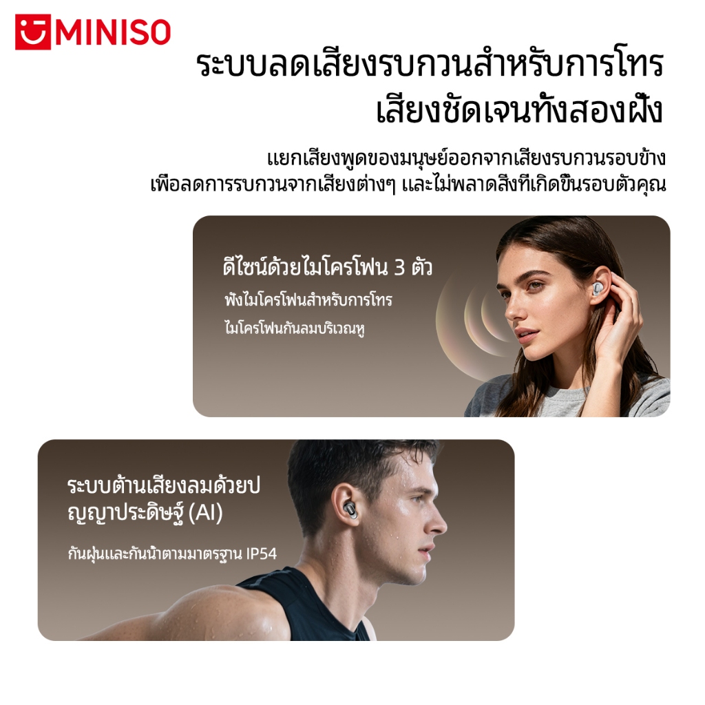 หูฟัง MINISO MS105 AI หูฟังบลูทูธ 6.0 หูฟังไร้สาย HD Call ดเสียงรบกวน พร้อมไมโครโฟน และกันน้ําระดับ IPX5 สำหรับ Android / iOS ของแท้100%