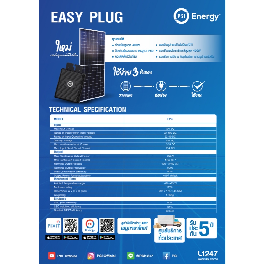 ชุดโซลาร์เซลล์ PSI KIT CT (Microinverter -กันย้อน) พร้อมอุปกรณ์