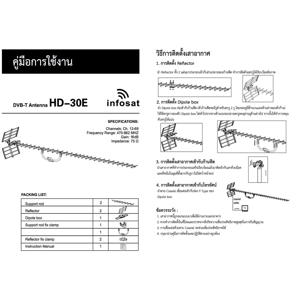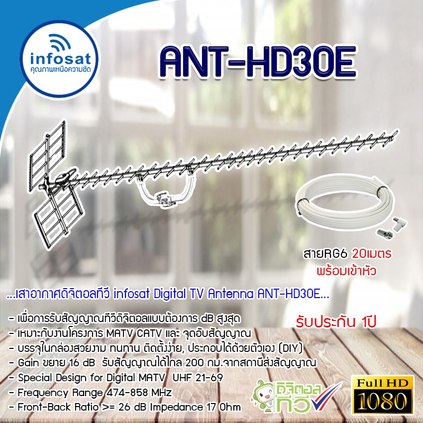 infosat Digital TV Antenna 30E เสาอากาศระบบดิจิตอลทีวี 30E พร้อมสาย 20 เมตร