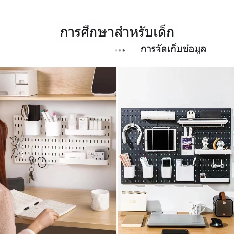 【จัดส่งที่รวดเร็ว】แผ่นปา DIY แผ่นรูพลาสติกสำหรับจัดเก็บบนโต๊ะพร้อมชุดติดตั้ง ตัวจัดระเบียบโต๊ะเล่นเกม