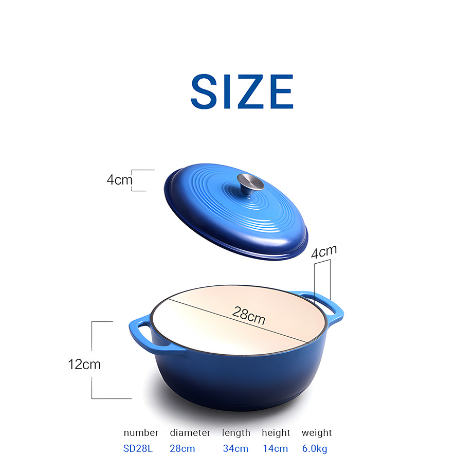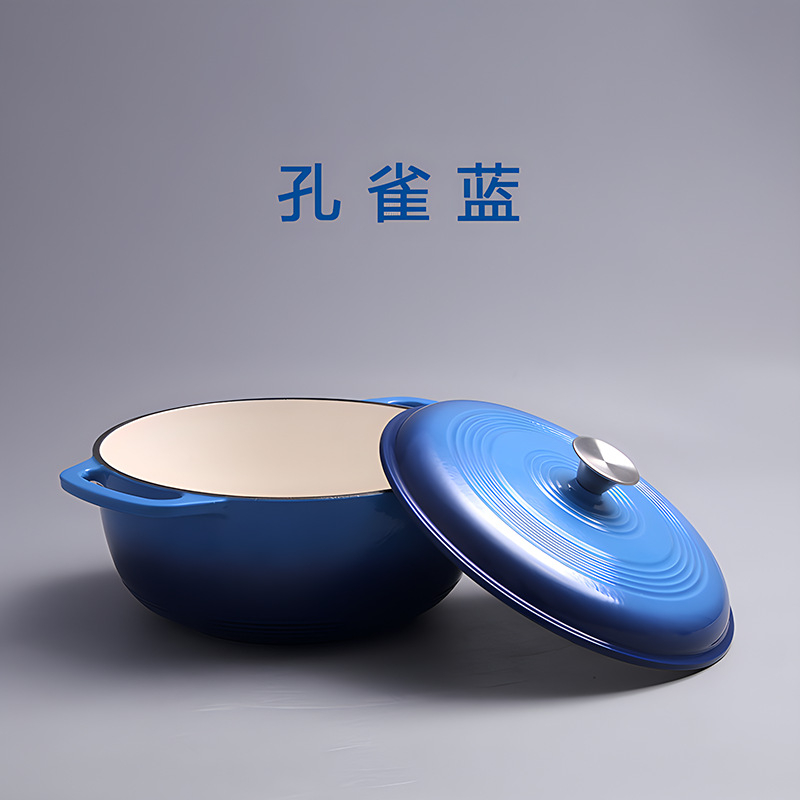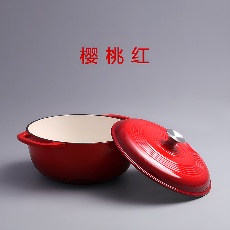 กระถางเคลือบเหล็กหล่อสำหรับการอบขนมปัง กระถางสองจับ กระถางเหล็กหล่อสีขาวลึก