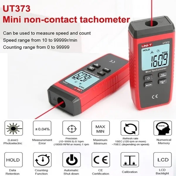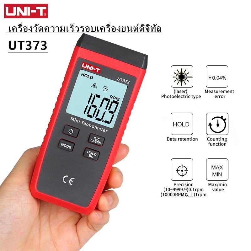 แท้ ส่งจากไทย Uni-t UT373 เครื่องวัดความเร็วรอบเครื่องยนต์ดิจิทัล LCD แบบมือถือ ระยะวัด 0~99999 นับครั้ง