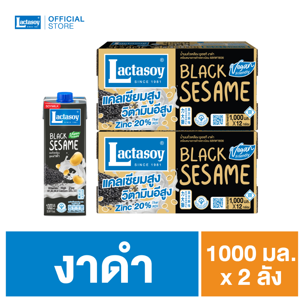 แลคตาซอย นมถั่วเหลือง ยูเอชที ผสมงาดำ 1000 มล. (ขายยก 2 ลัง x 12 กล่อง : รวม 24 กล่อง)