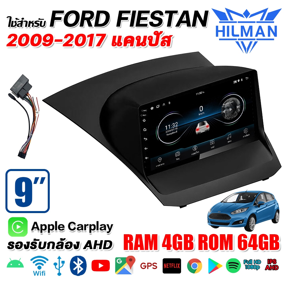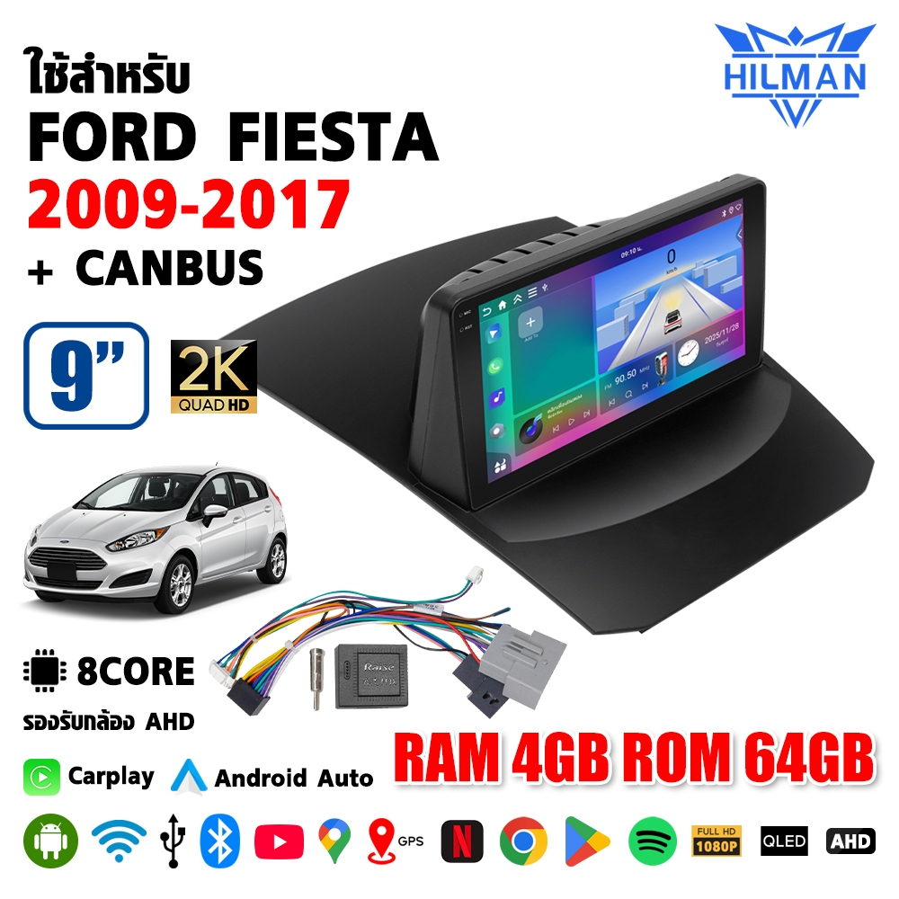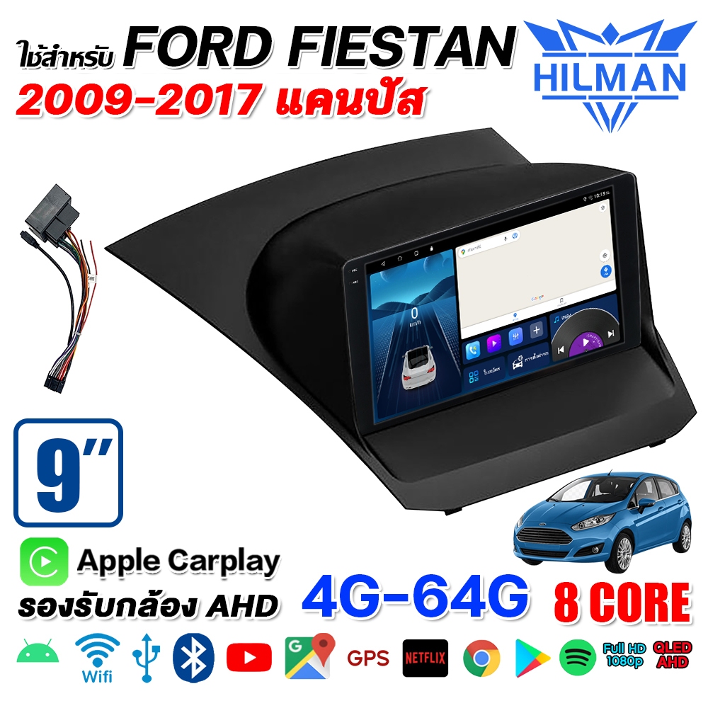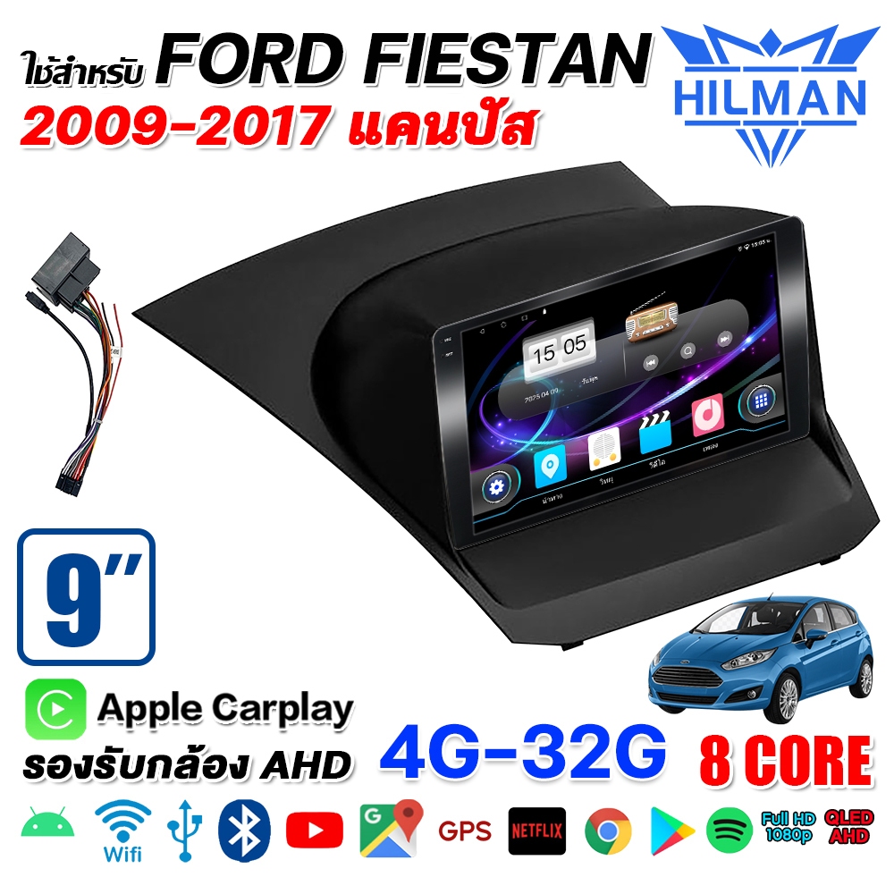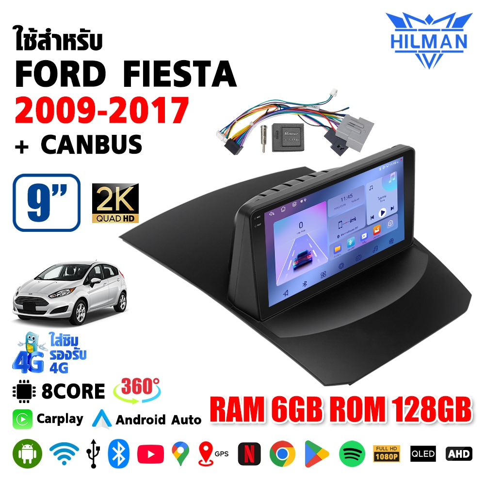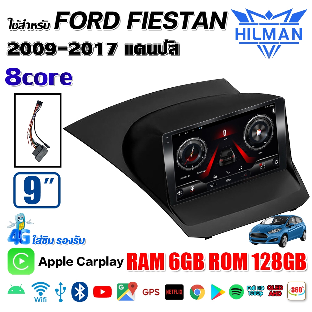 AO จอแอน ดรอย 9นิ้ว ใช้สำหรับ FORD FIESTA 2009-2017 Android WIFI GPS 360° และ 4G จอQLED Apple CarPlay จอแอนดรอยตรงรุ่น