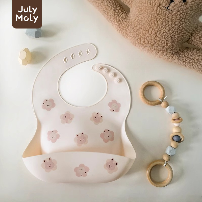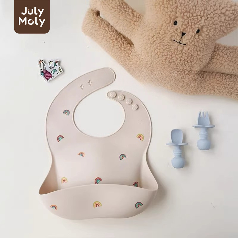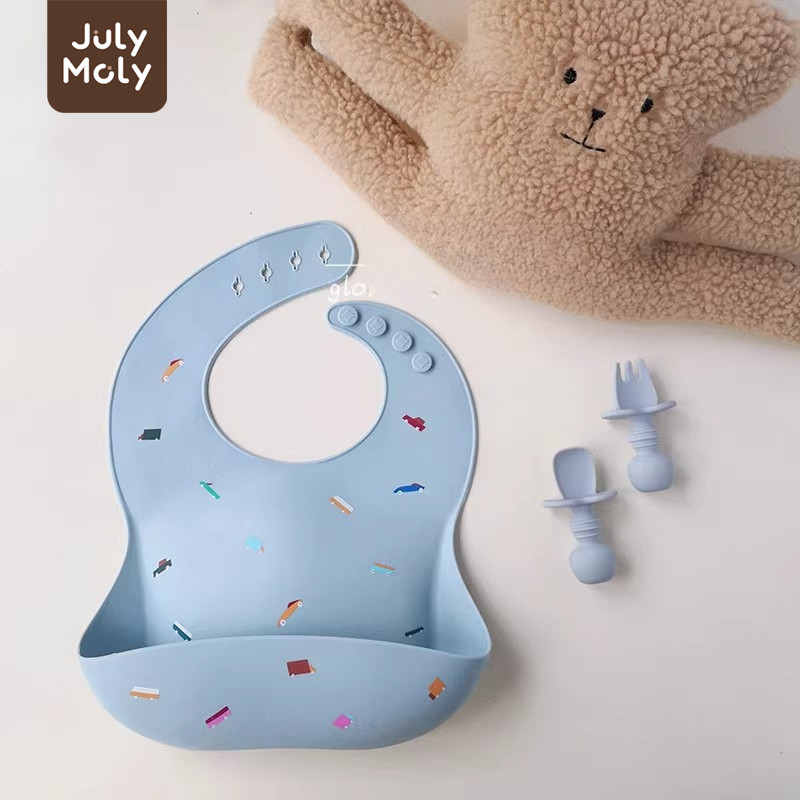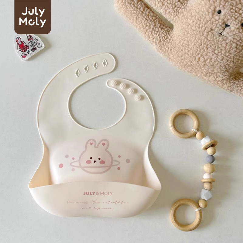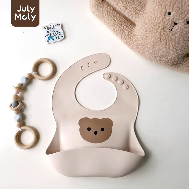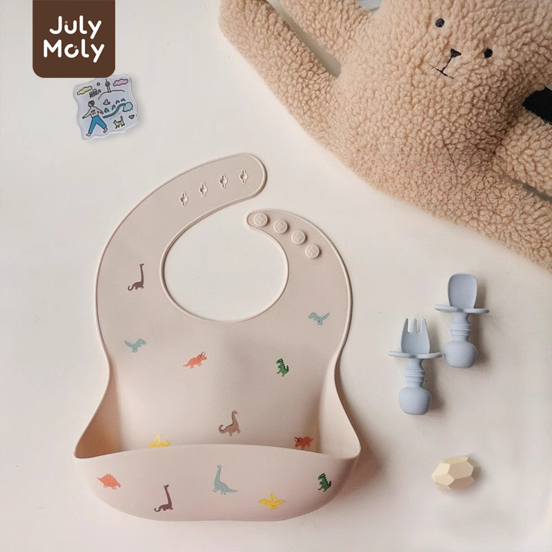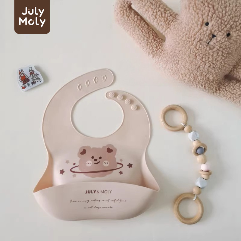 July Moly ผ้ากันเปื้อนเด็ก พร้อมถาดรอง ผ้ากันเปื้อนซิลิโคน กันเปื้อนเด็ก กันน้ำได้ ลายการ์ตูน