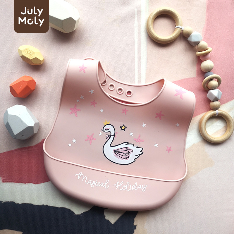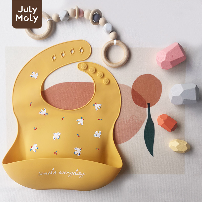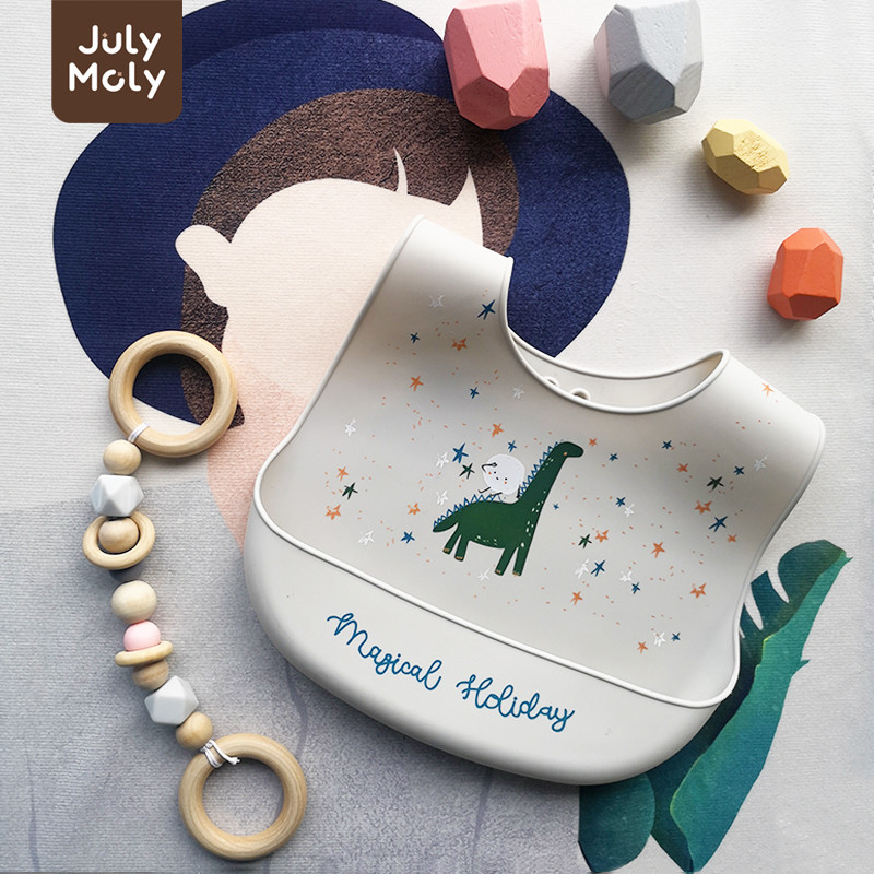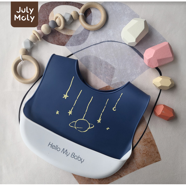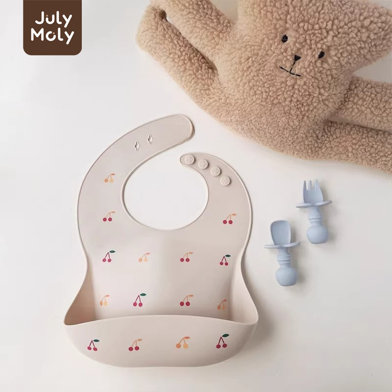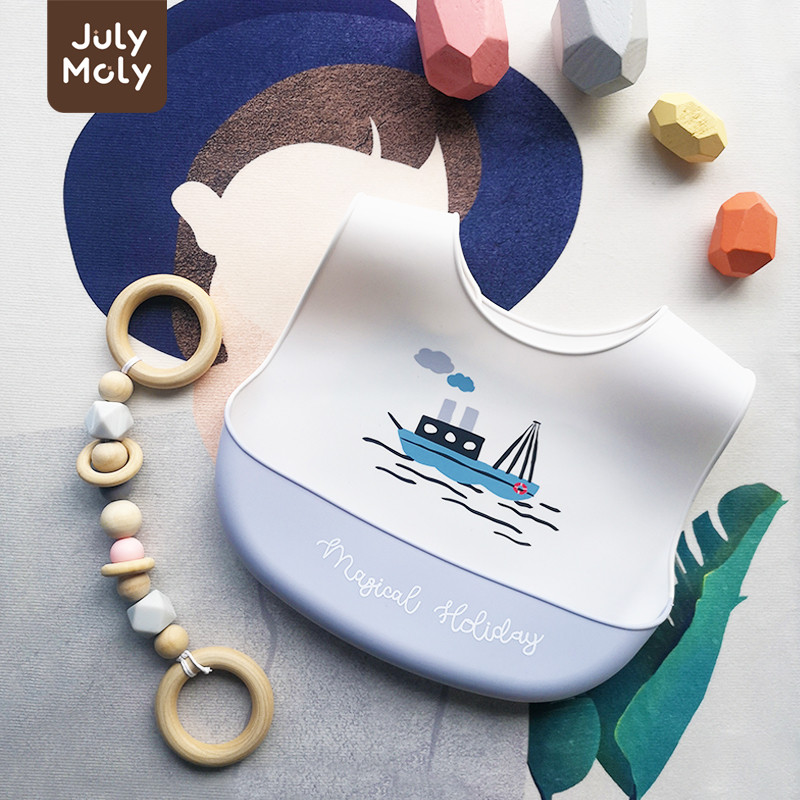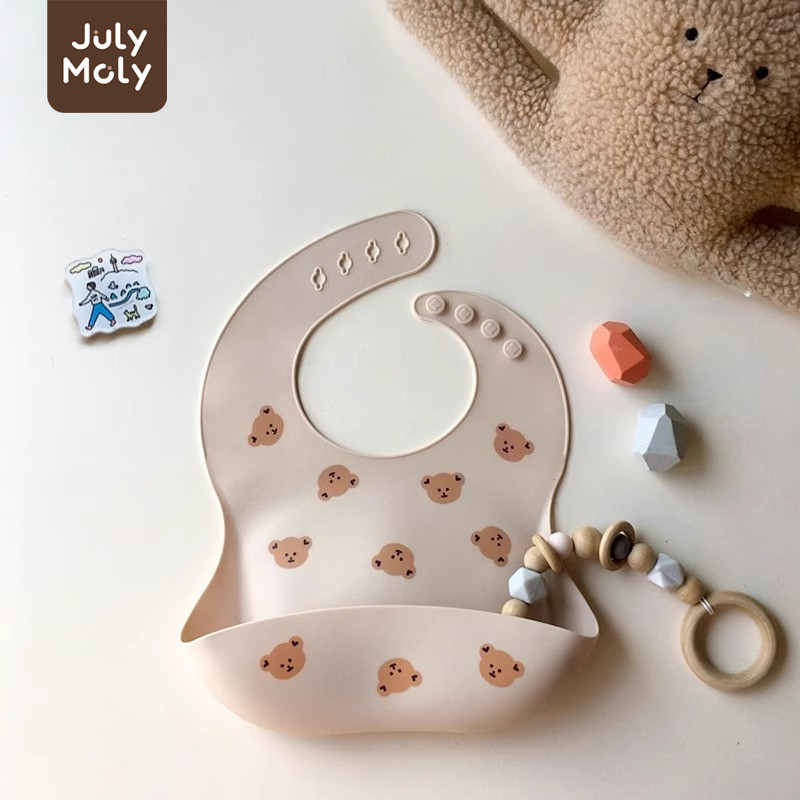 July Moly ผ้ากันเปื้อนเด็ก พร้อมถาดรอง ผ้ากันเปื้อนซิลิโคน กันเปื้อนเด็ก กันน้ำได้ ลายการ์ตูน