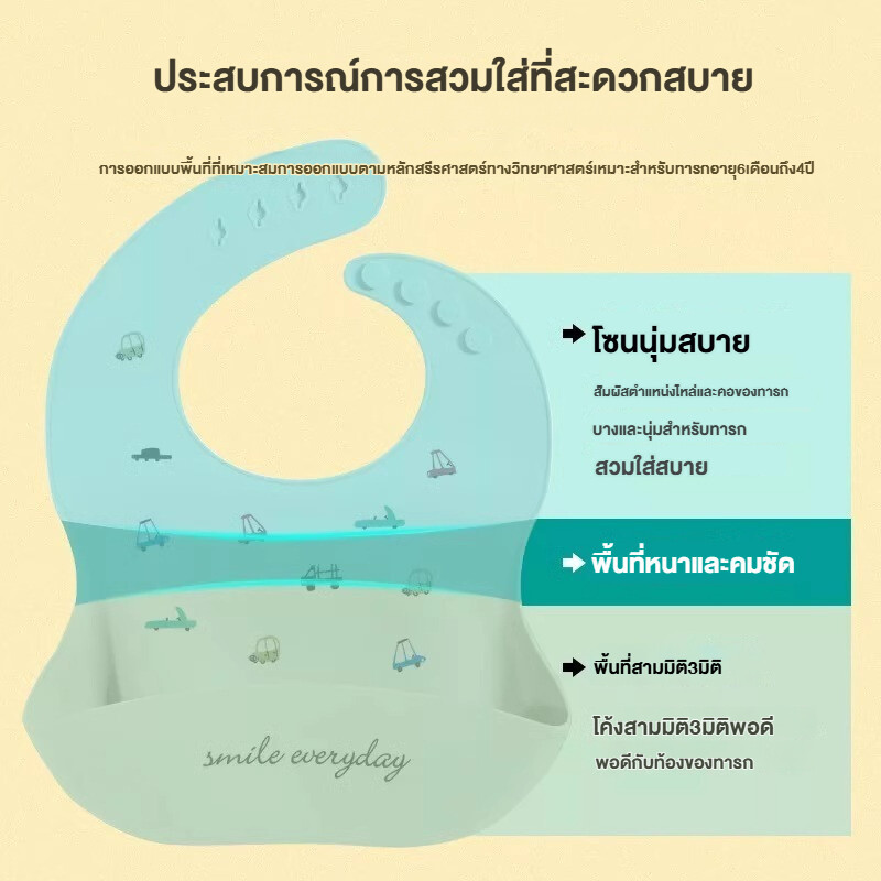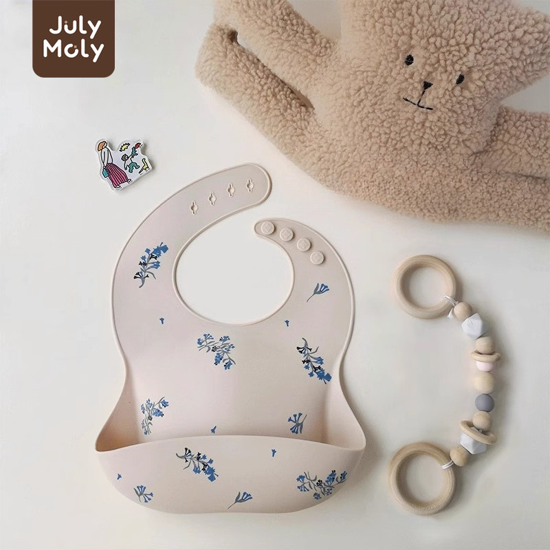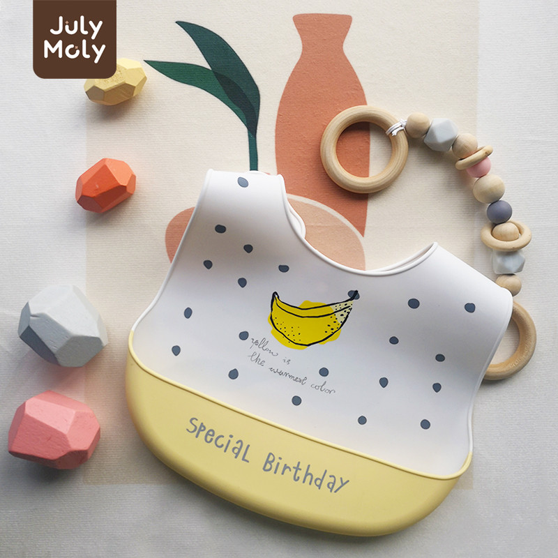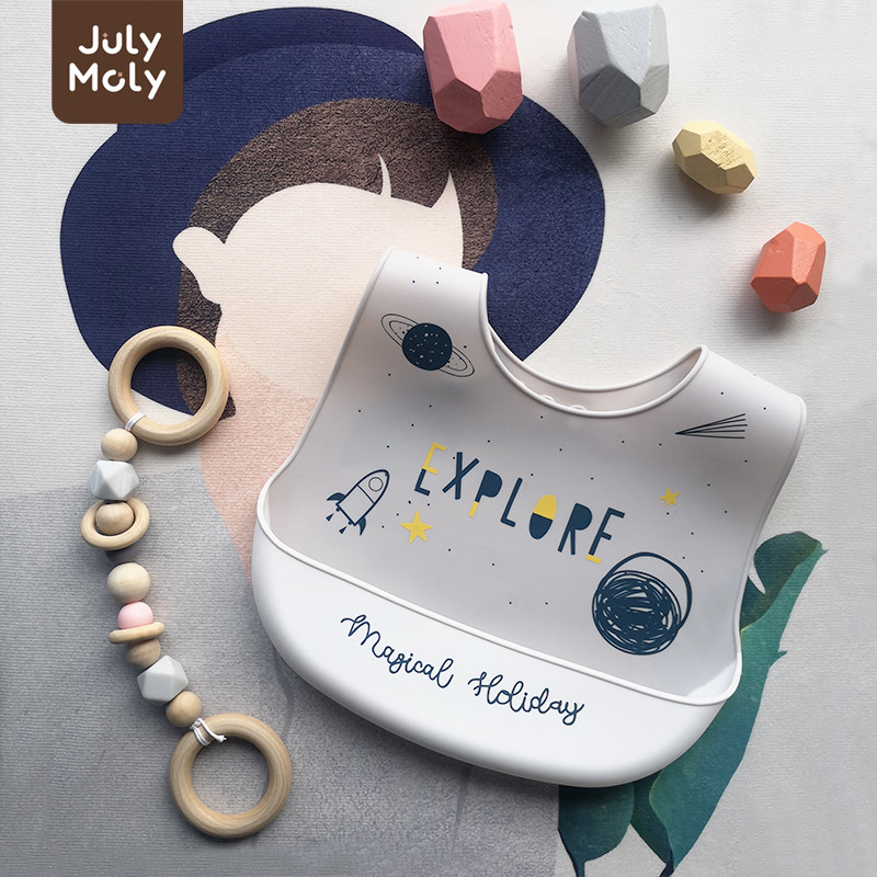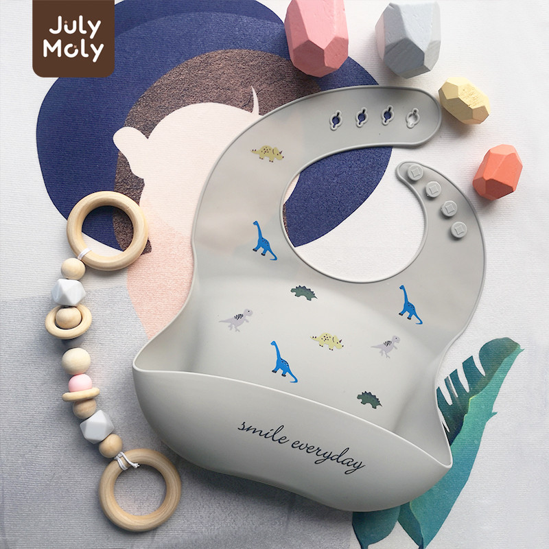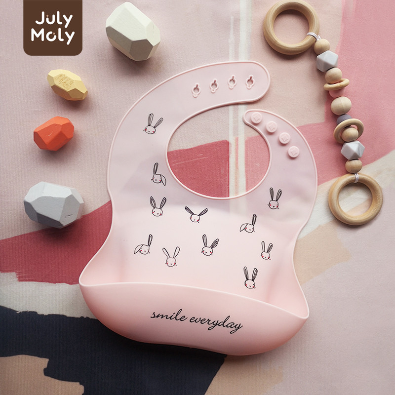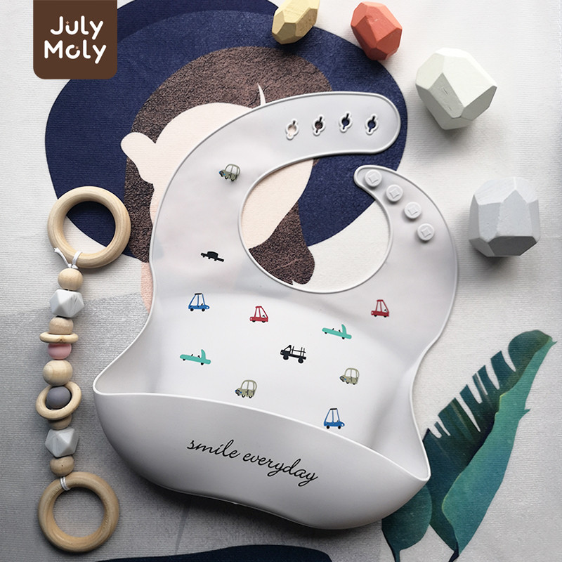 July Moly ผ้ากันเปื้อนเด็ก พร้อมถาดรอง ผ้ากันเปื้อนซิลิโคน กันเปื้อนเด็ก กันน้ำได้ ลายการ์ตูน