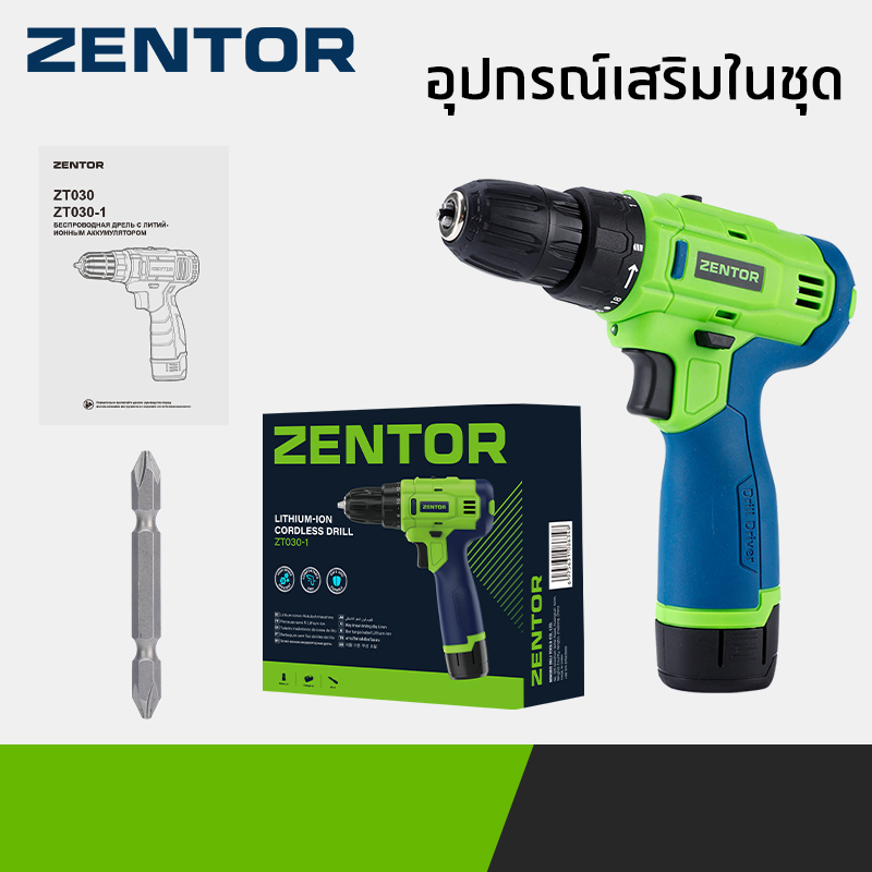 Zentor สว่านไฟฟ้า สว่านไร้สาย ไขควงไฟฟ้า ขันสกรูว หมุนซ้ายขวาได้ มาพร้อมแบต Cordless Electric Drill