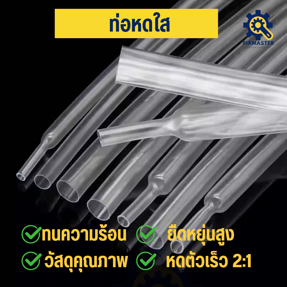 🔥ท่อหดใสโปร่งแสง Ultra Thin | 2:1 แบบบางพิเศษ โปร่งใส ยืดหยุ่นสูง หดเร็ว ใช้กับสายไฟ/ซ่อมอุปกรณ์/หุ้มสาย | ขายเป็นเมตร