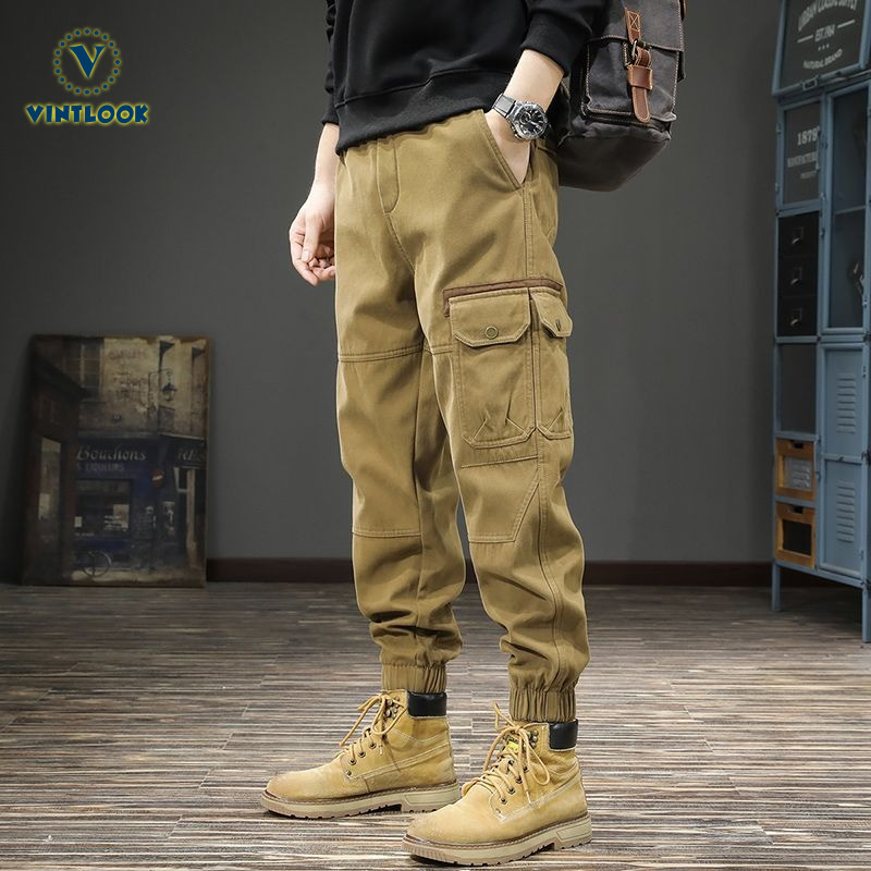 VINTLOOK Mens Streetwear Tactical Cargo Pants Loose Multi-Pocket Jogger Pants Male