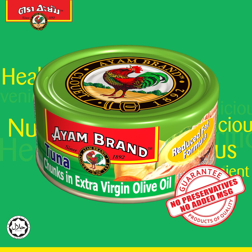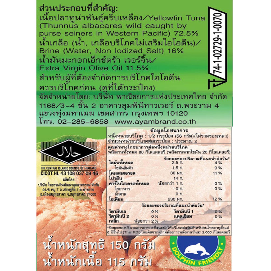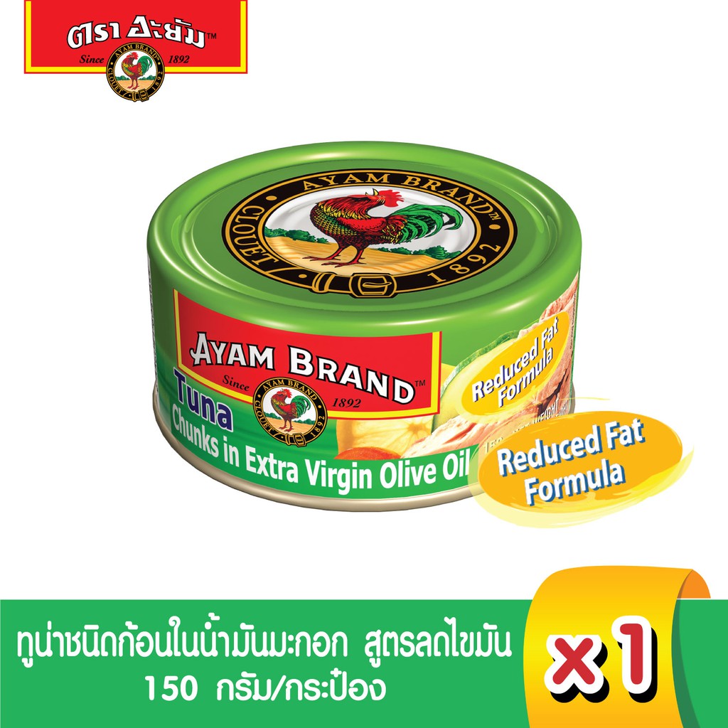 อะยัม ปลาทูน่าชนิดก้อนในน้ำมันมะกอกสูตรลดไขมัน 150 กรัม