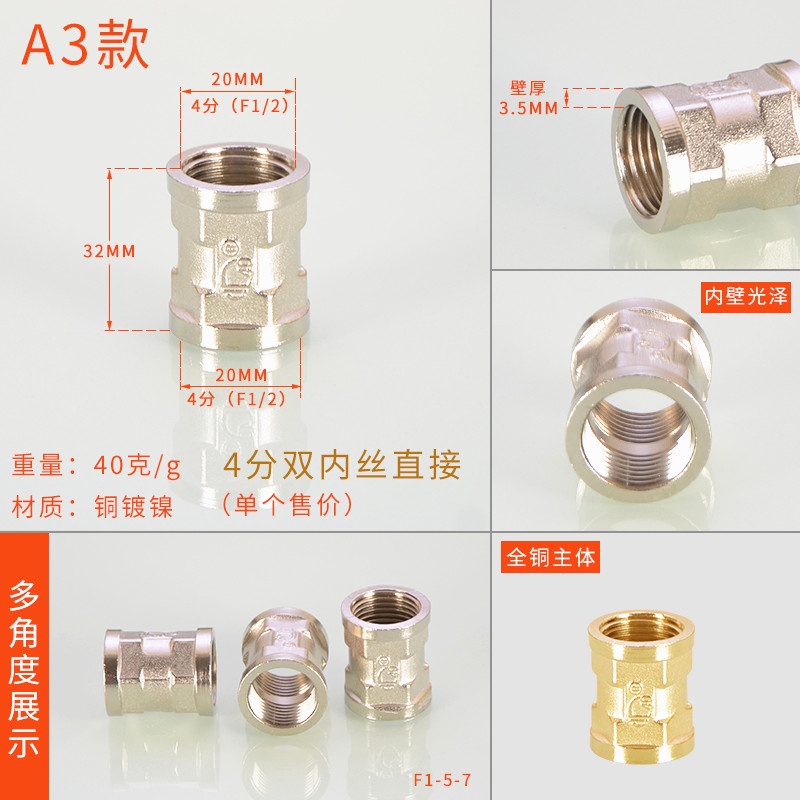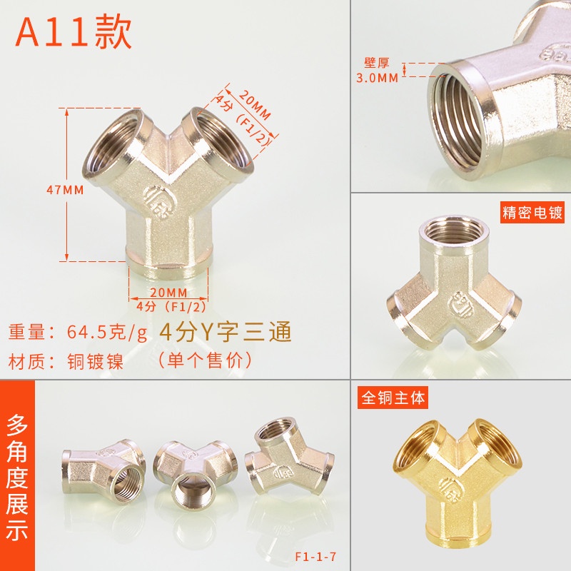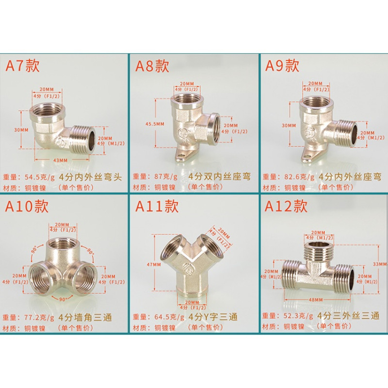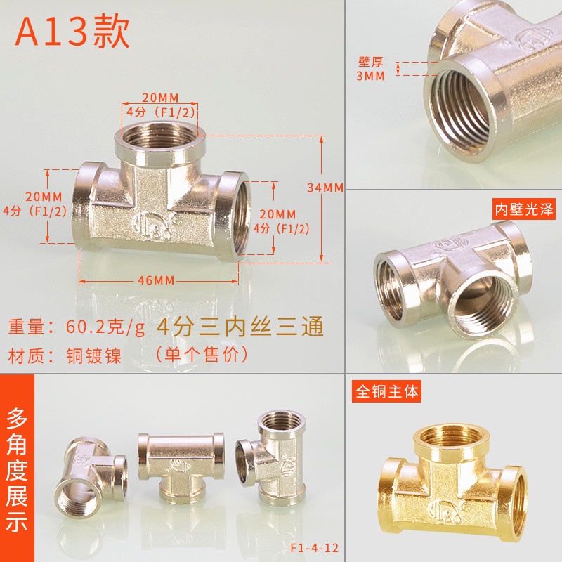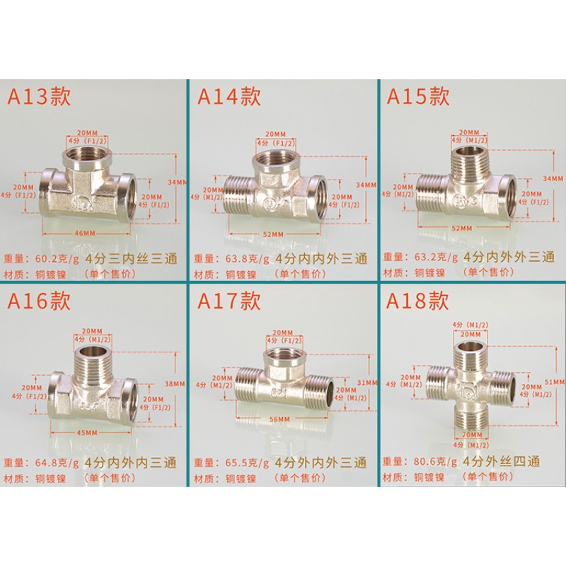 [HYH] ข้อต่อทีทองแดง 20 มม. 1/2 ข้อศอกสีสแตนเลสโดยตรง DN15 Electroplating Four-Way Live การเชื่อมต่อลวดด้านนอกด้านในอุปกรณ์ท่อน้ําแก๊ส