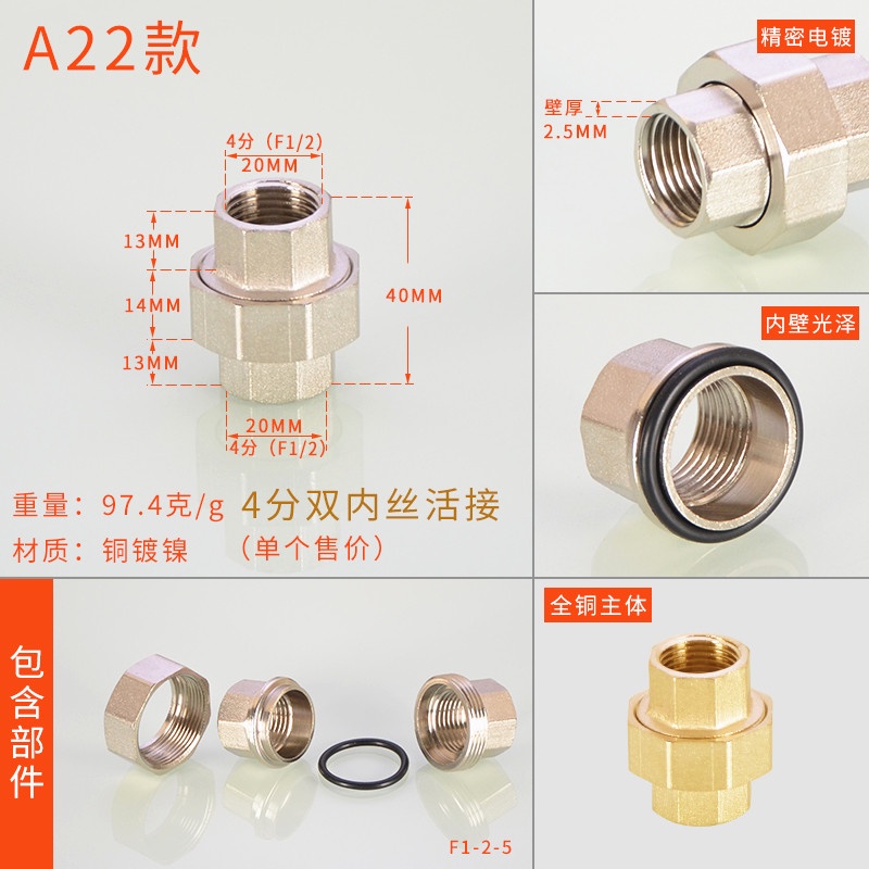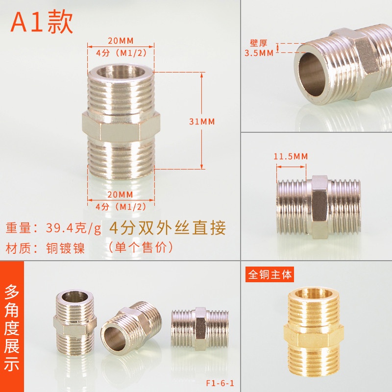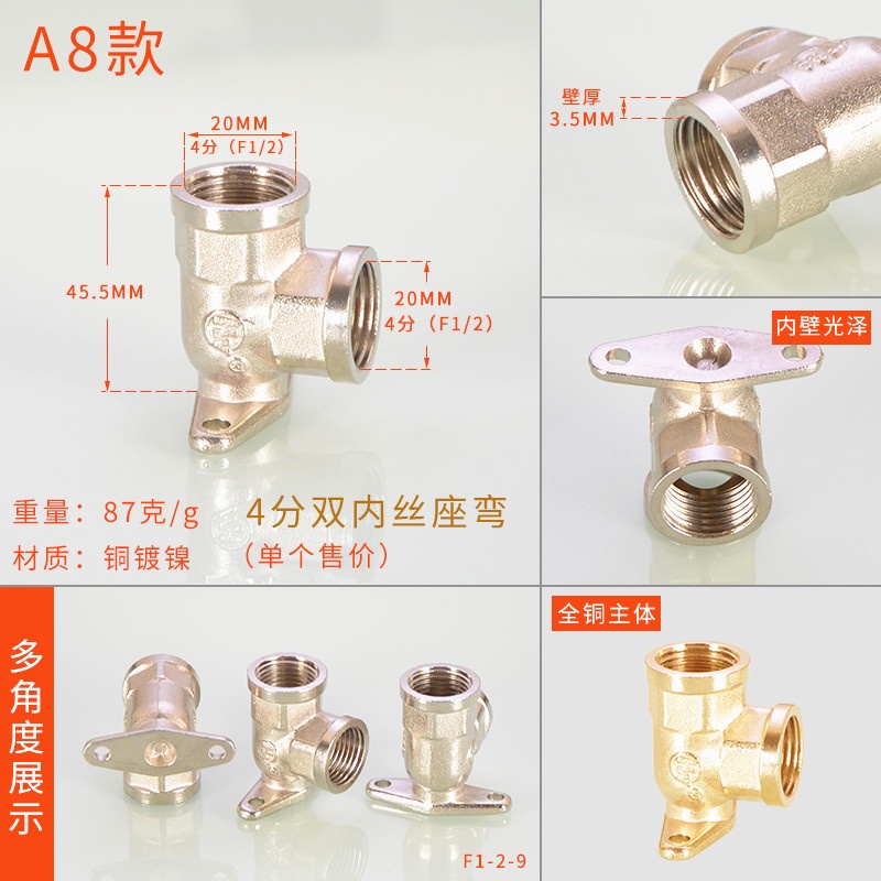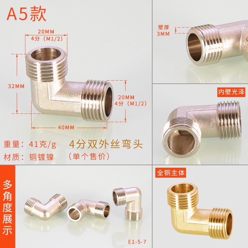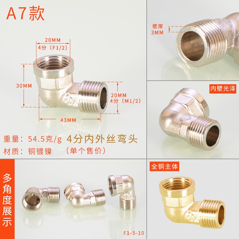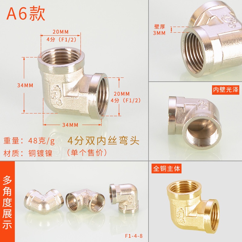 [HYH] ข้อต่อทีทองแดง 20 มม. 1/2 ข้อศอกสีสแตนเลสโดยตรง DN15 Electroplating Four-Way Live การเชื่อมต่อลวดด้านนอกด้านในอุปกรณ์ท่อน้ําแก๊ส