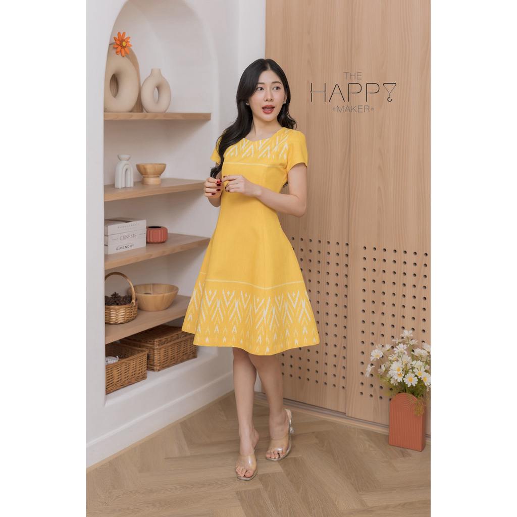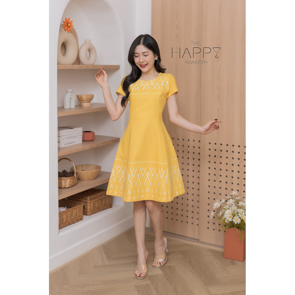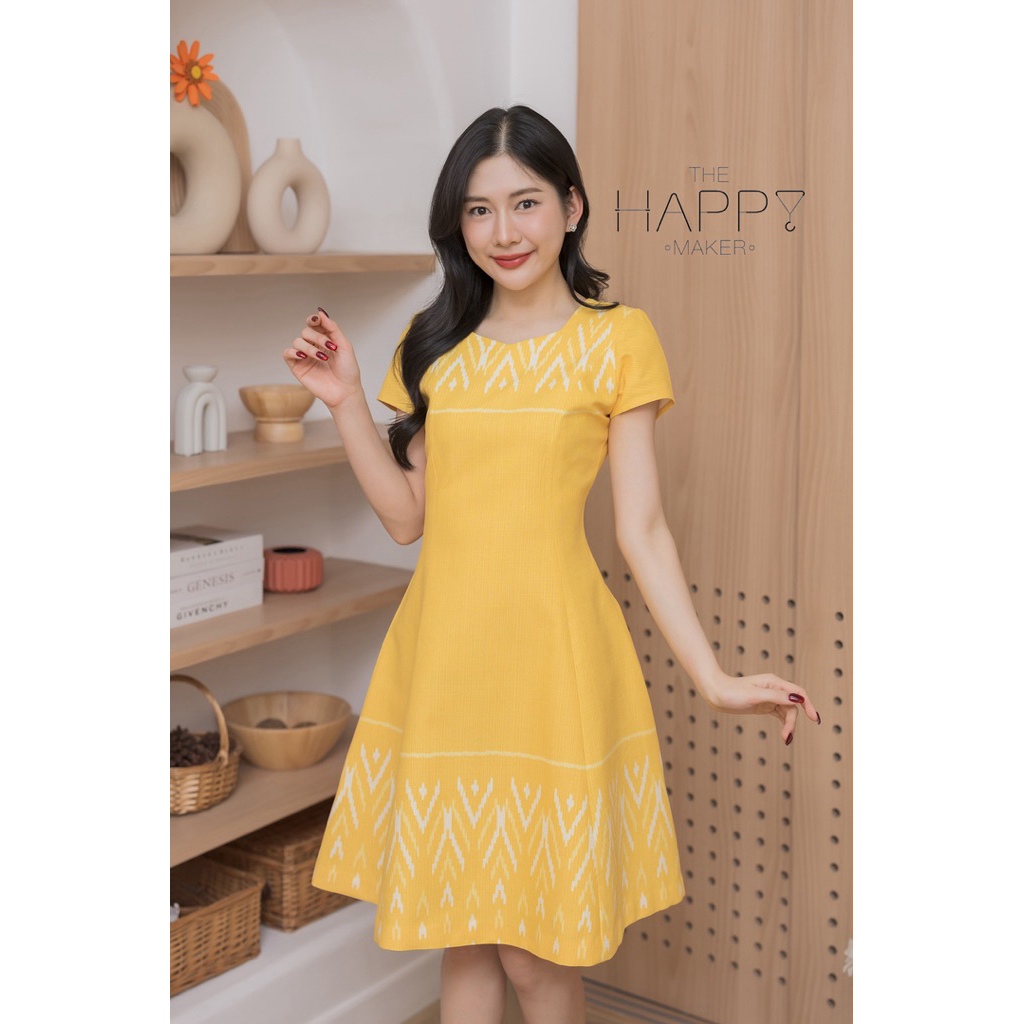 [แบรนด์ไทย] ชุดทำงานผ้าไทยสีเหลือง ชุดทำงานผ้าไทยไม่แก่ ชุดผ้าไทยวัยรุ่น
