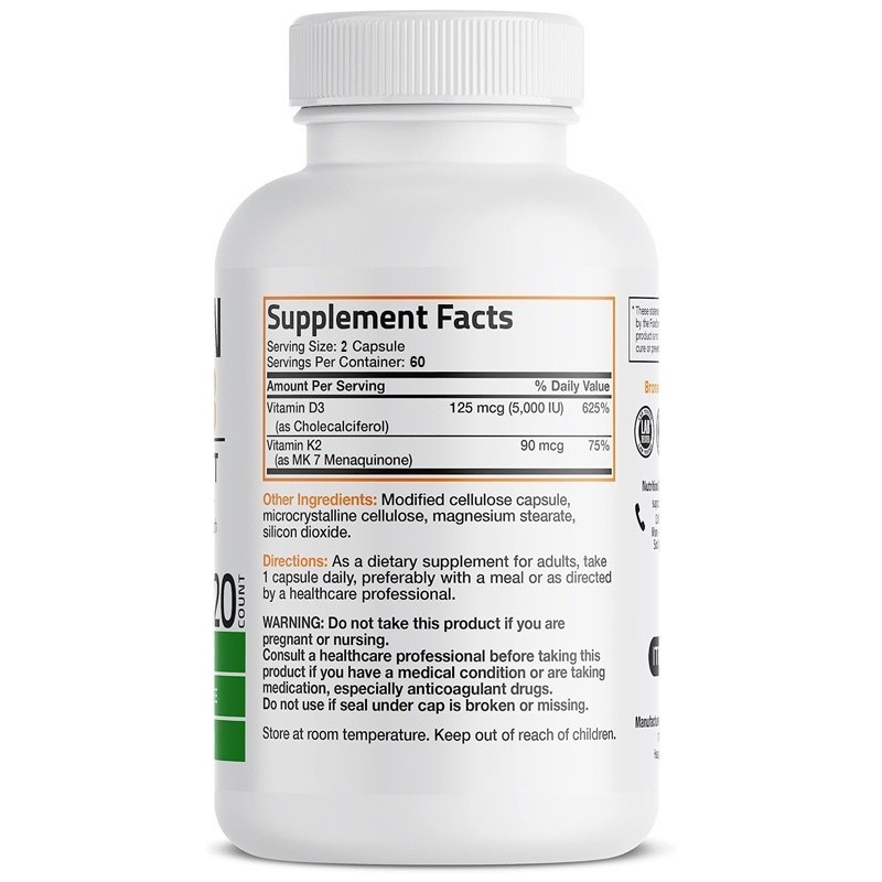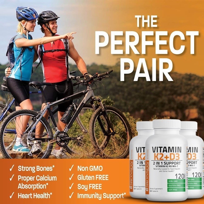 วิตามินเคทู (MK7)ด้วย D3 Extra Strengthens Bones และสูตรเพื่อสุขภาพที่ไม่ใช่จีเอ็มโอ วิตามิน D3 + K2 10,000 IU
