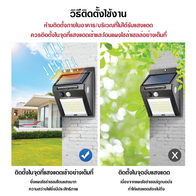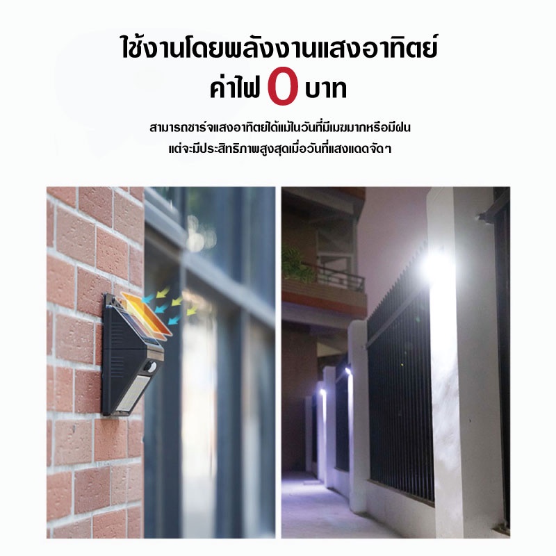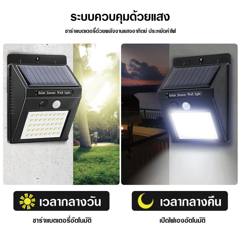 🔥รับประกัน 2 ปี▶️ไฟติดผนัง เซ็นเซอร์ ไฟโซล่าเซลล์ ไฟCOB ไฟฉุกเฉิน หลอดLED30 ใช้พลังงานแสงอาทิตย์