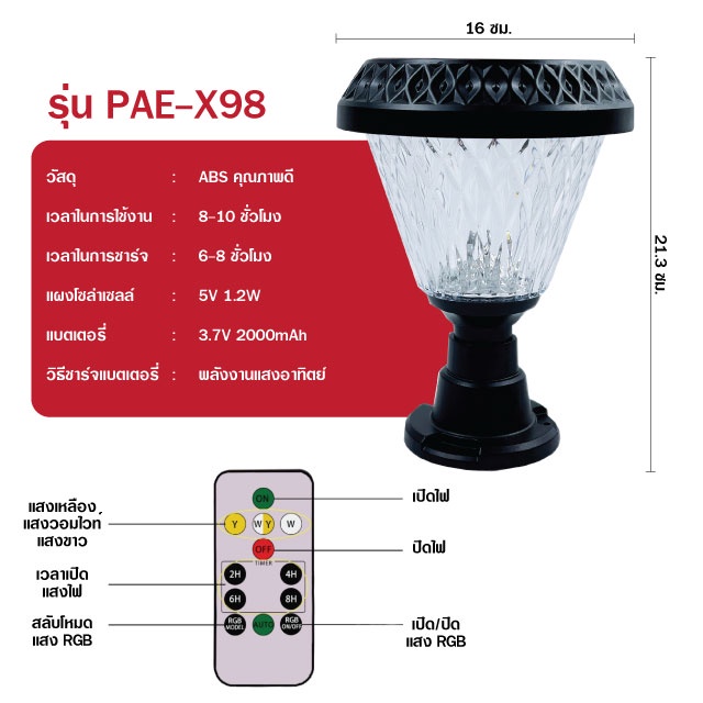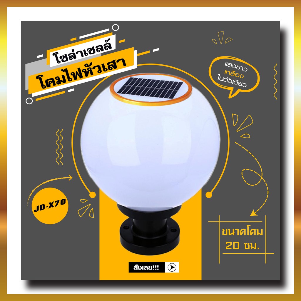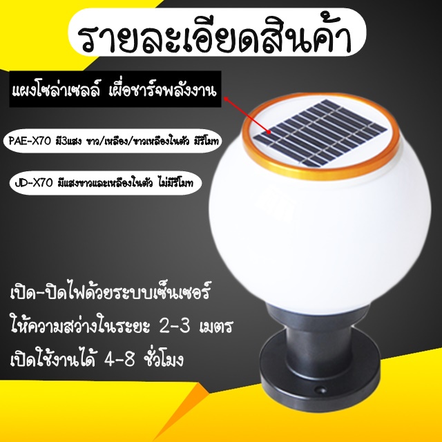 🔥รับประกัน 2 ปี▶️โคมไฟหัวเสาทรงกลม โคมไฟโซล่าเซลล์ ใช้พลังงานแสงอาทิตย์ ไฟLED