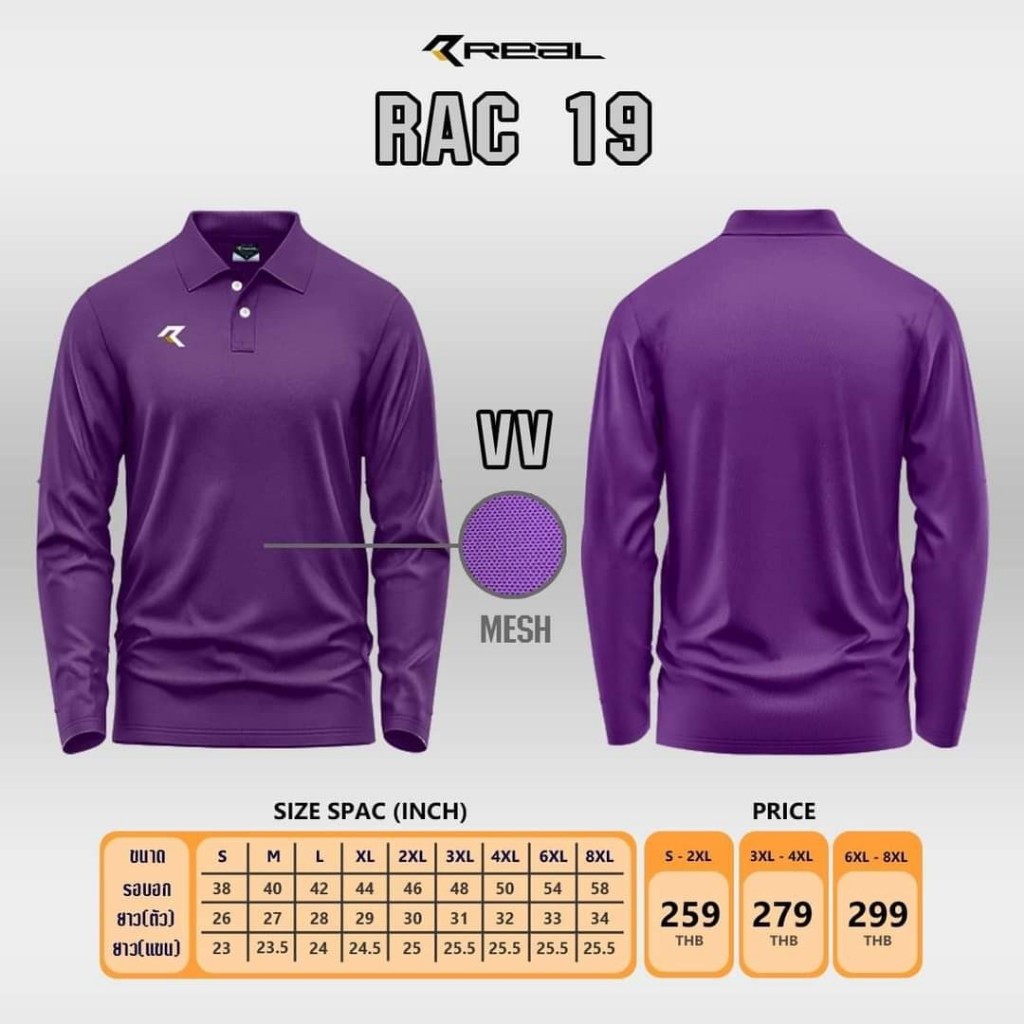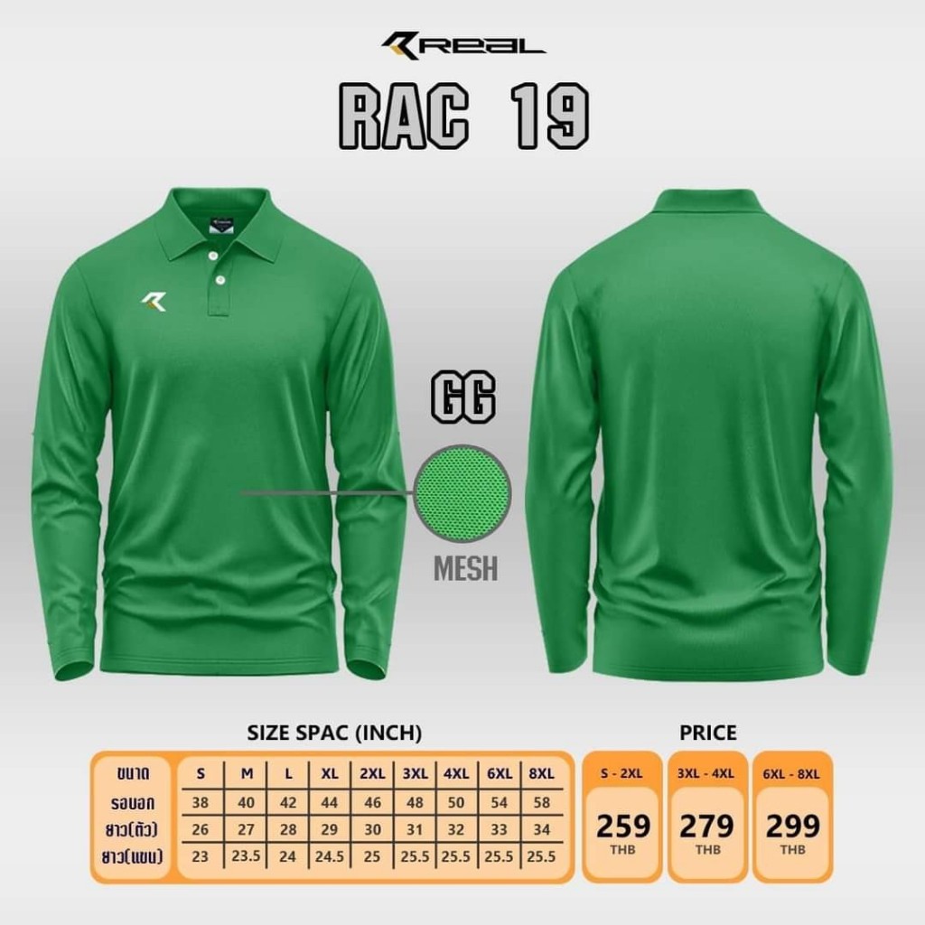 เสื้อโปโลแขนยาว REAL UNITED รุ่น RAC19 สีล้วน