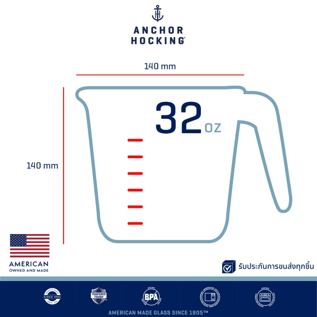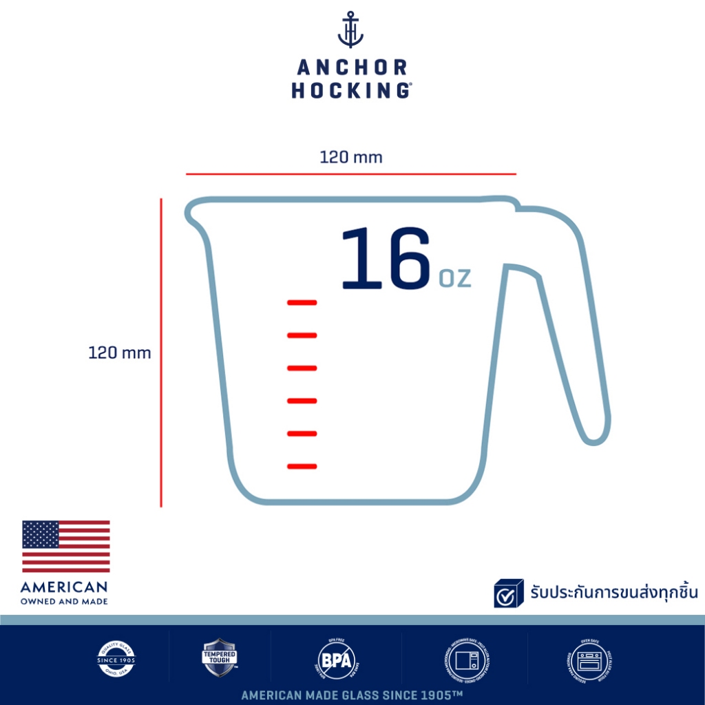 ถ้วยตวง แก้วตวง Anchor Hocking นำเข้าจากสหรัฐอเมริกา เข้าไมโครเวฟได้ (1ใบ)