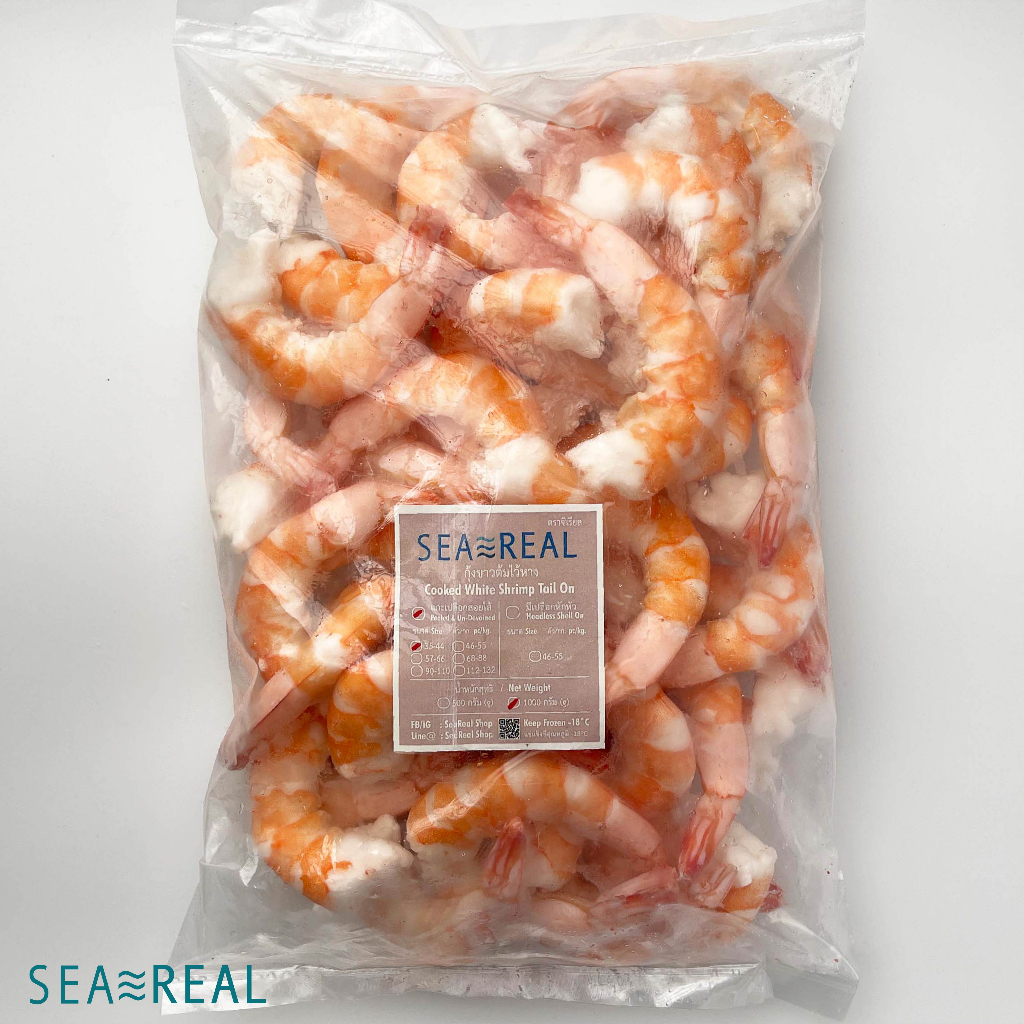 Seareal กุ้งขาวต้มสุกแกะเปลือกสอยไส้ไว้หางแช่แข็ง (C&PUDTO) คุณภาพดีมาก มีหลายขนาดให้เลือก