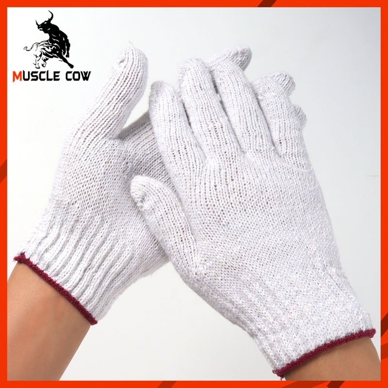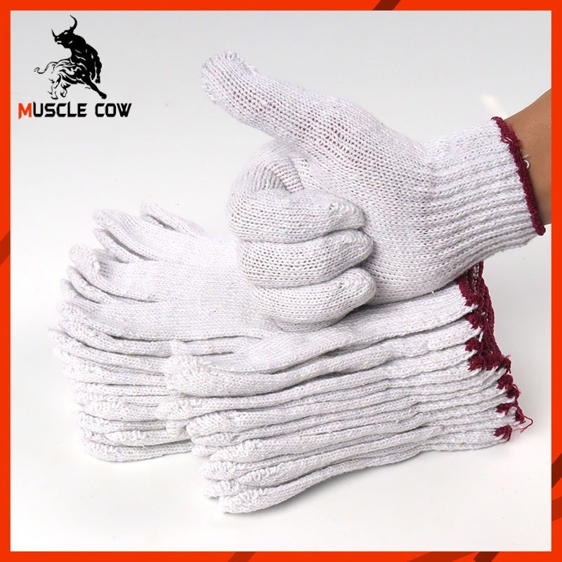 MUSCLE COW ถุงมือผ้าฝ้าย ถุงมือทำงาน ถุงมือผ้า 12คู่ สีขาว/สีเทา ราคาถูก สินค้าคุณภาพดี