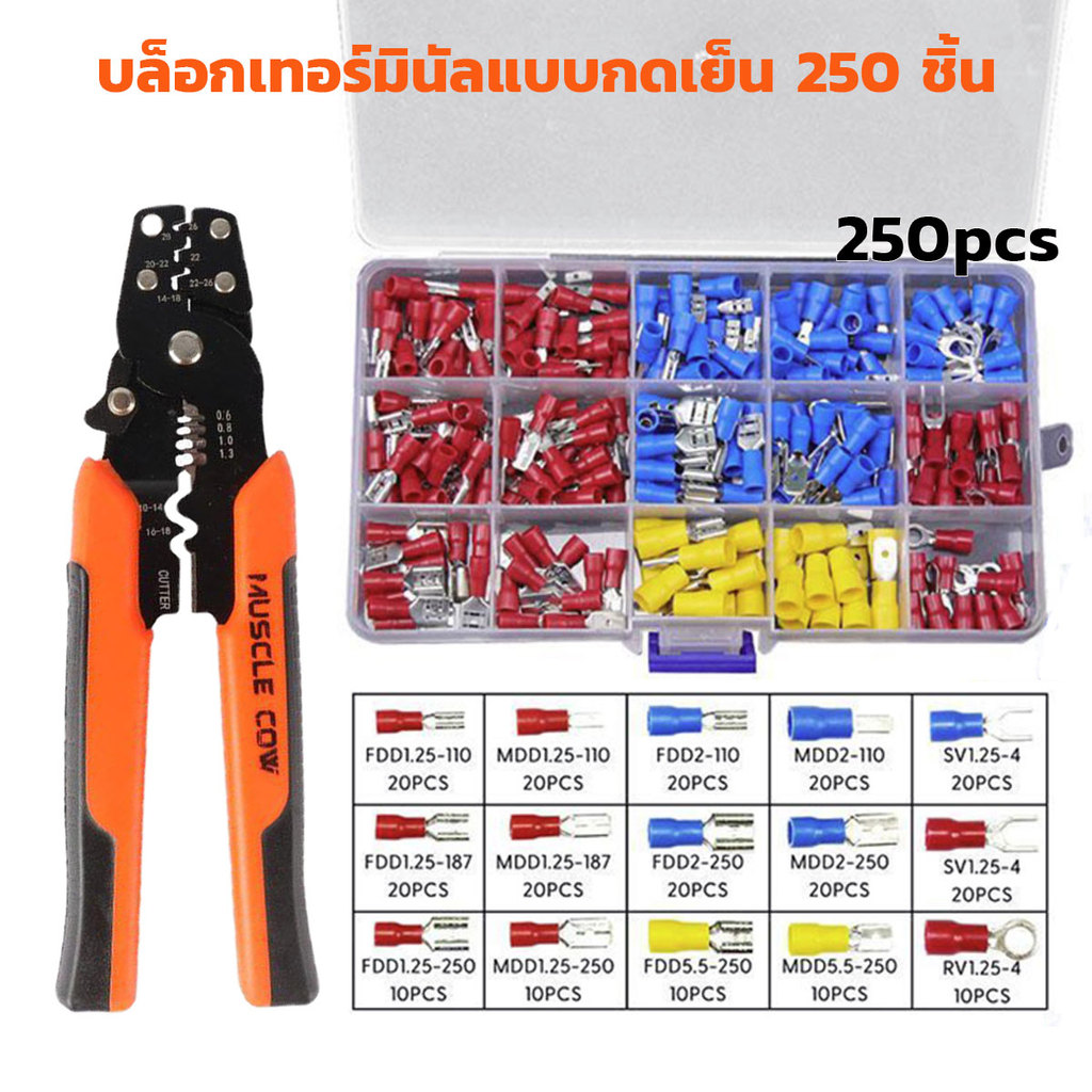 หางปลา 320 ชิ้น หางปลาแบน หางปลาแฉก หางปลากลม หุ้มฉนวน PVC ชุดหางปลาเชื่อมต่อสายไฟ สาย พร้อมกล่องและป้ายบอกขนาด