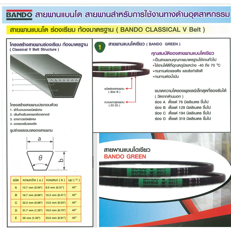 BANDO สายพาน ร่อง A a18 a19 a20 a21 a22 a23 a24 a25 a26 a27 a28 a29 หน้ากว้าง 12.7